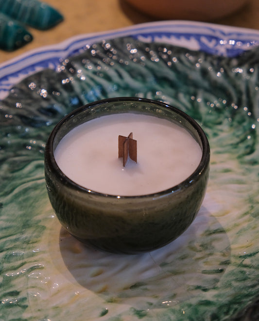 Bougie — verre bleu paon