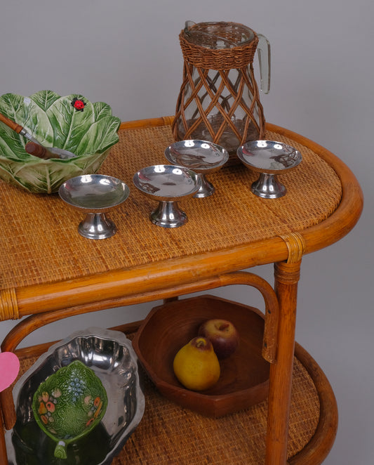 Desserte en rotin et osier, années 70
