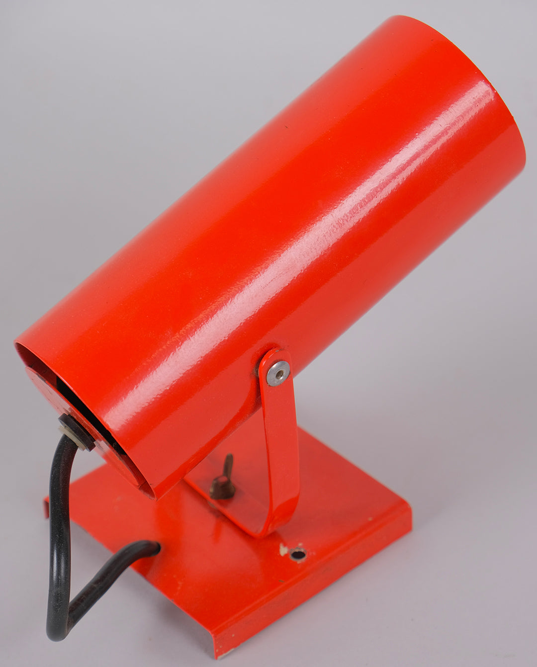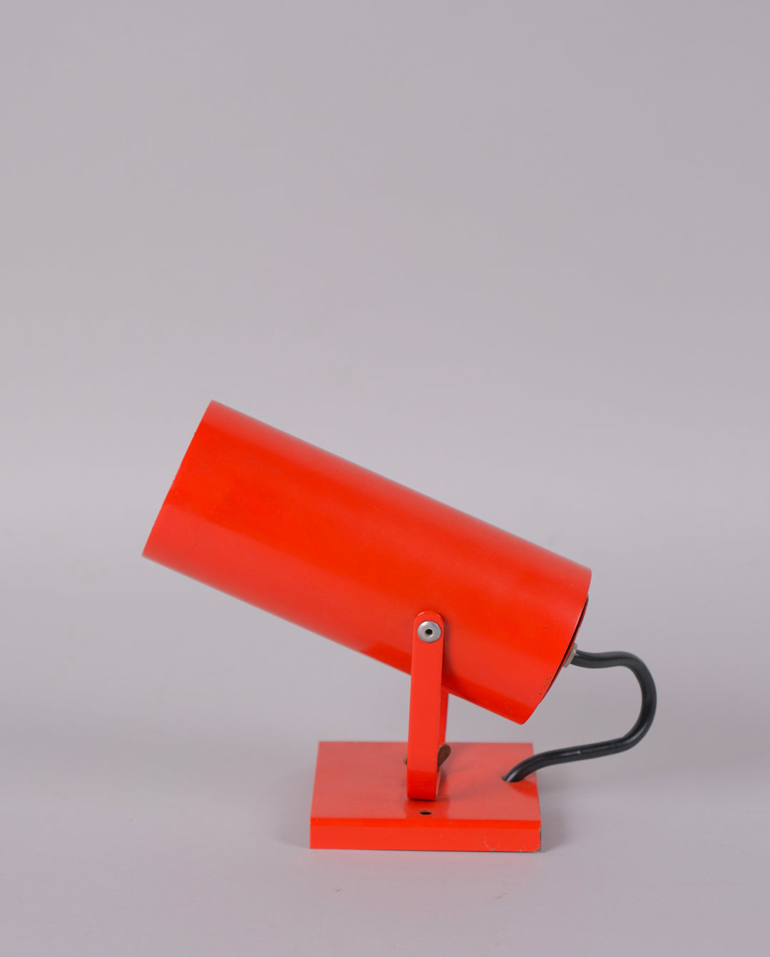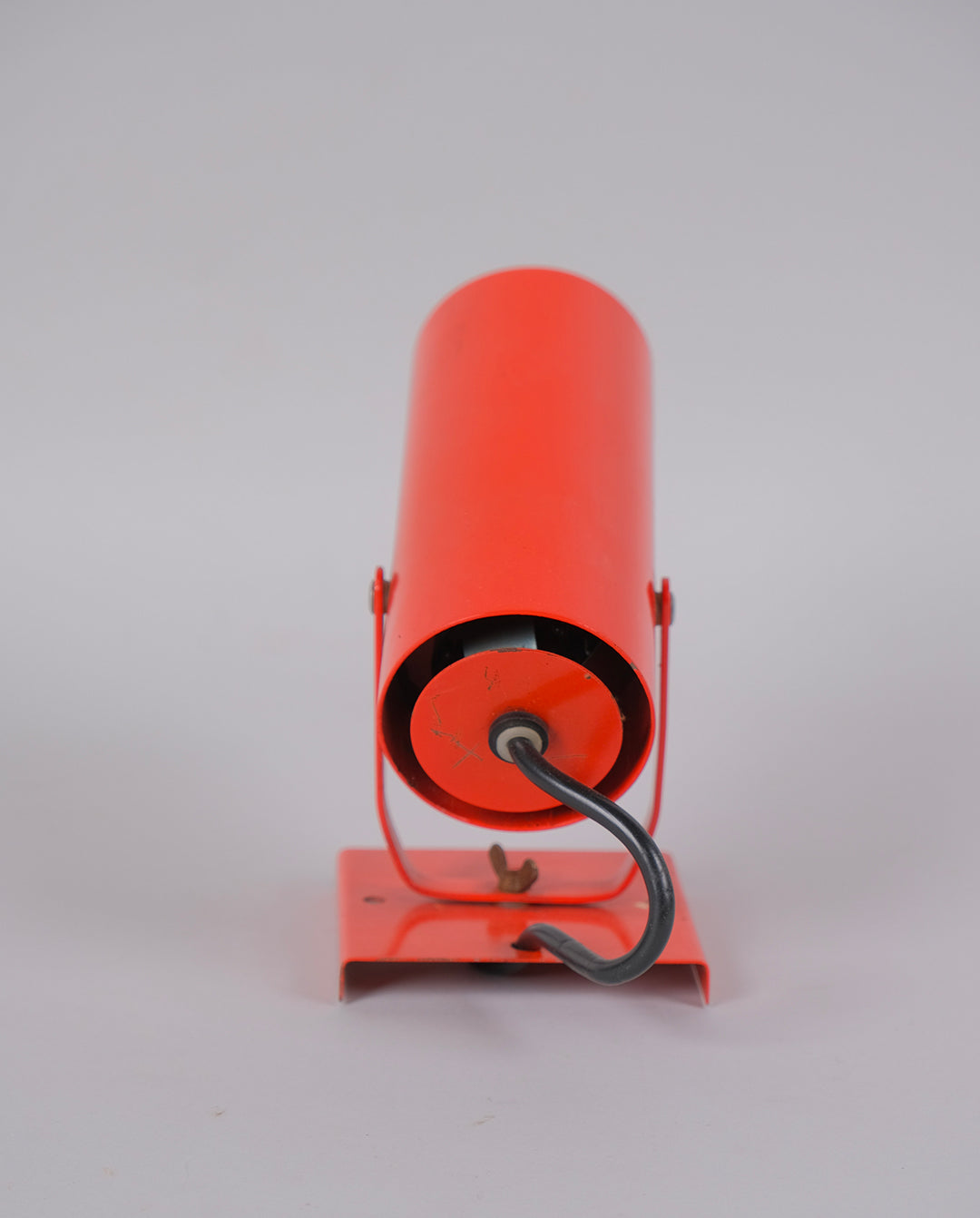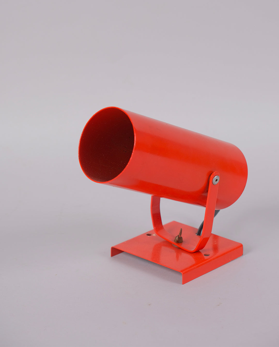 Spot vintage en métal rouge, tête orientable grâce à la petite molette qui permets de serrer et desserrer l'élément.