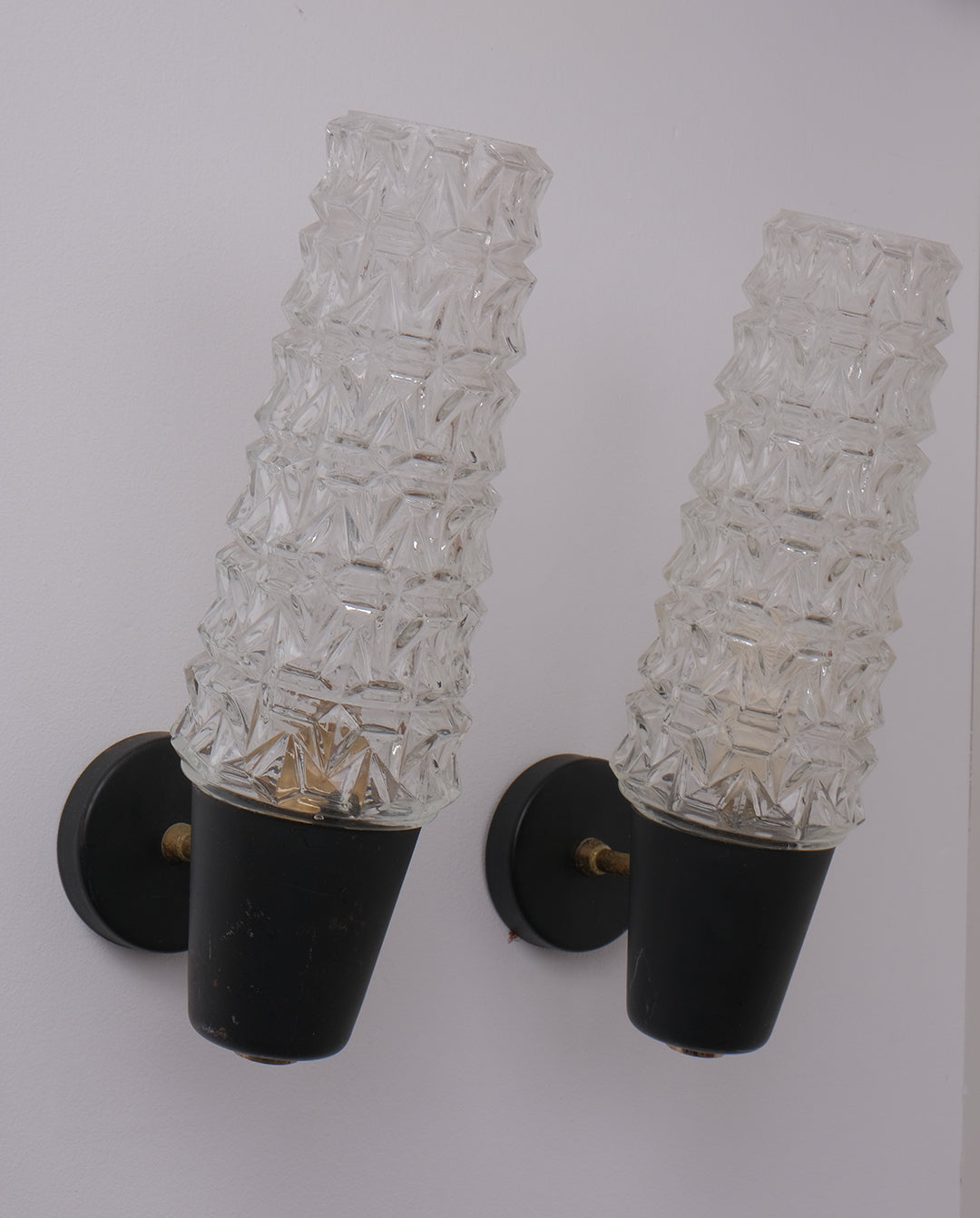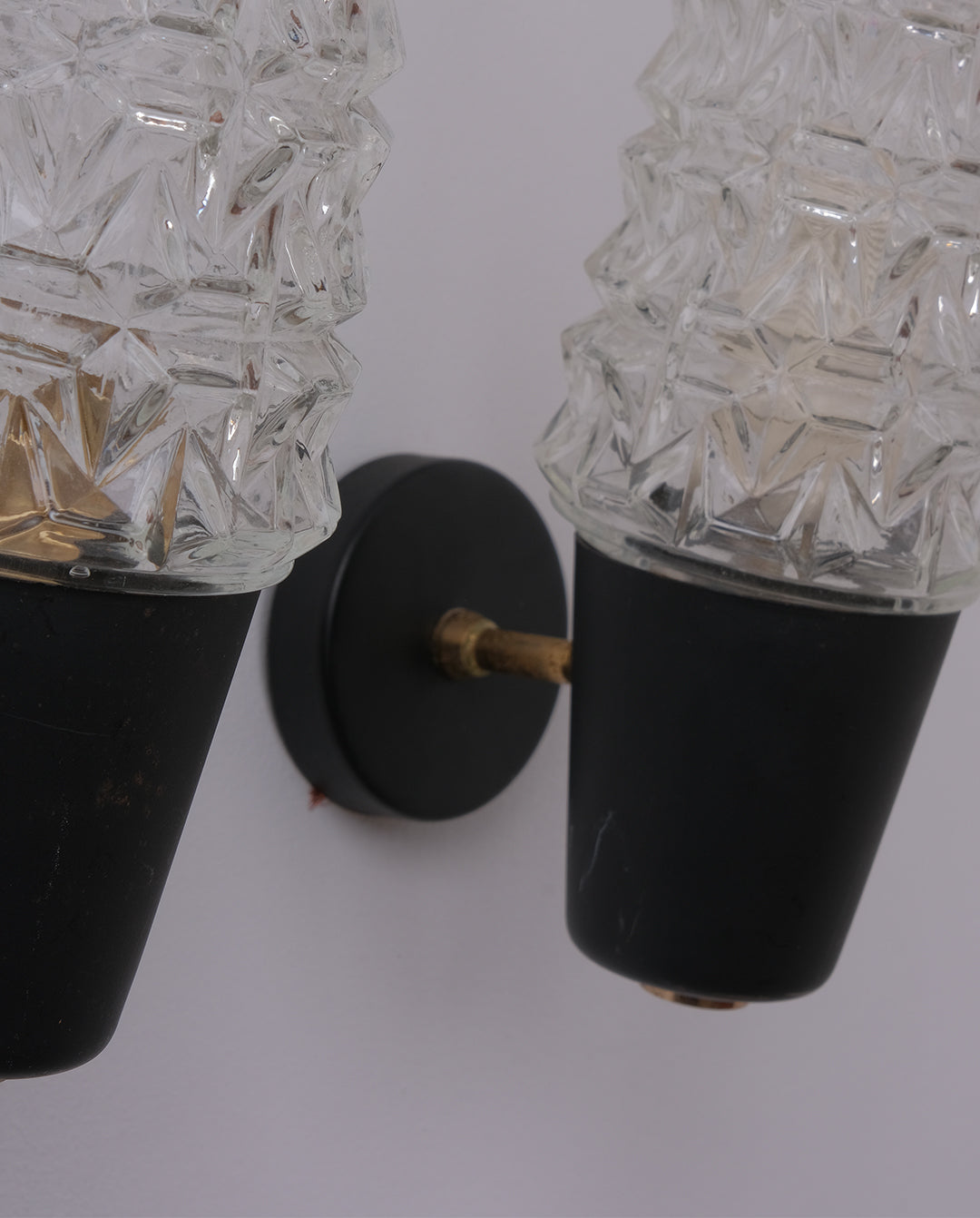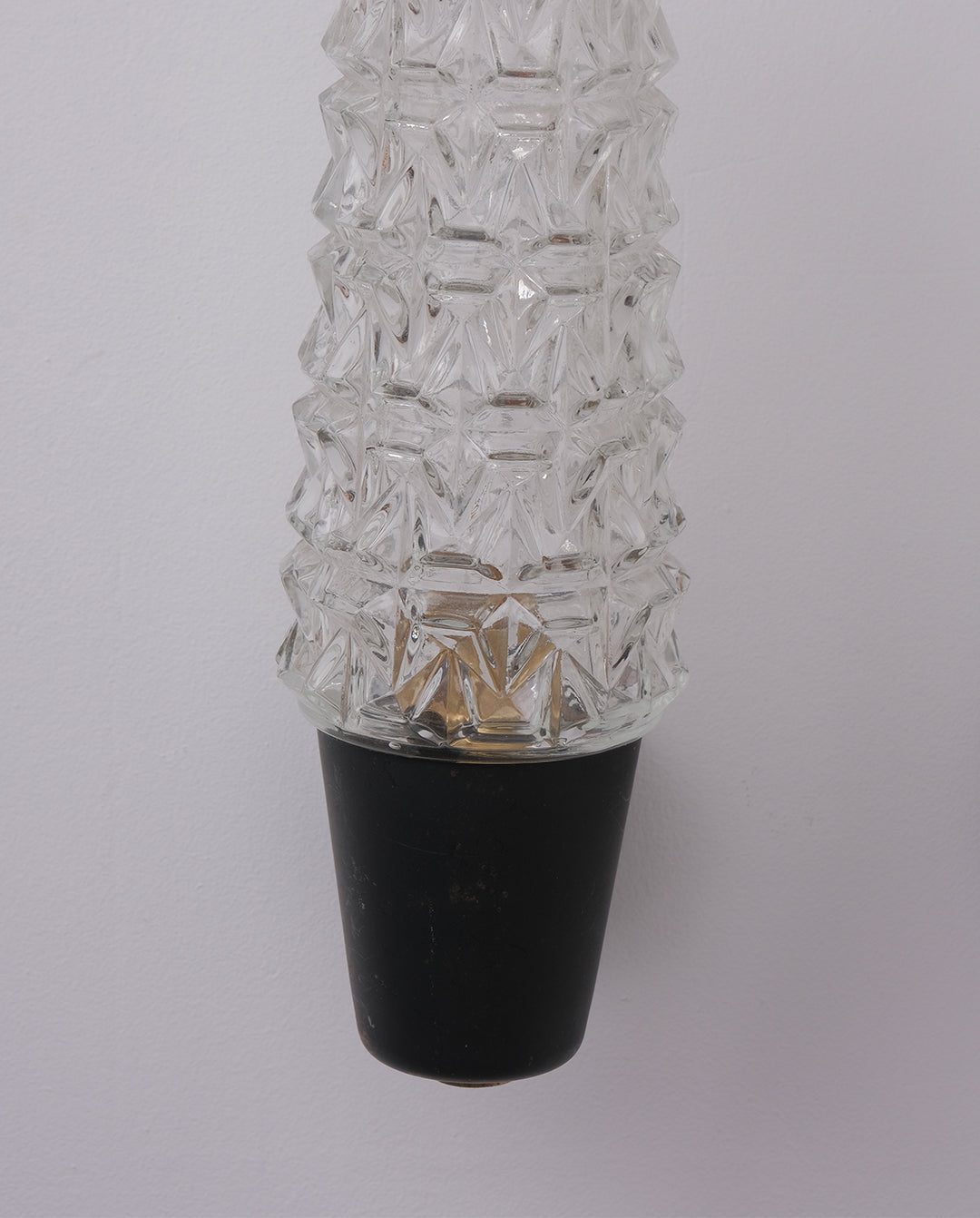 Base en métal dépoli noir et abat-jour en verre à facetetes.