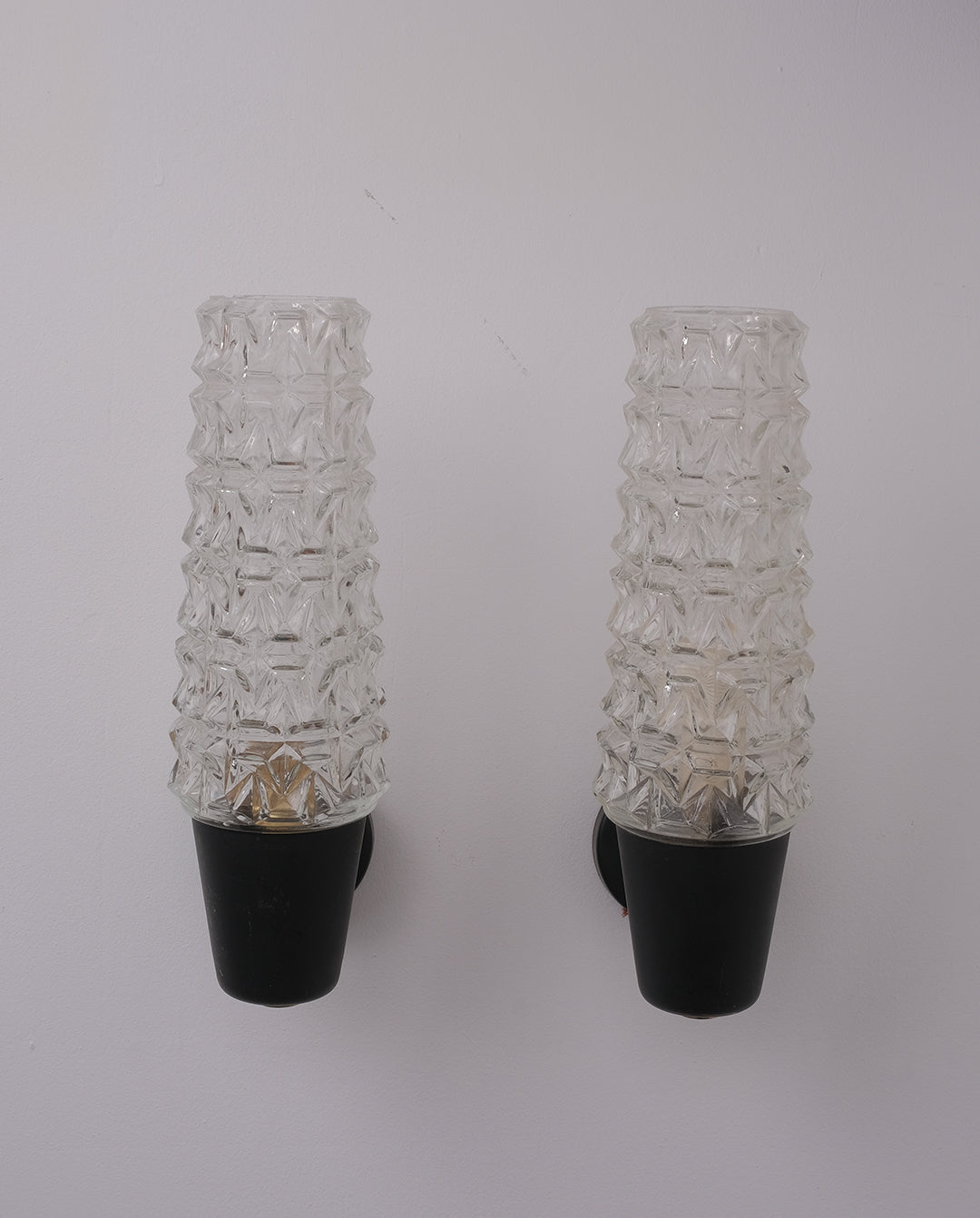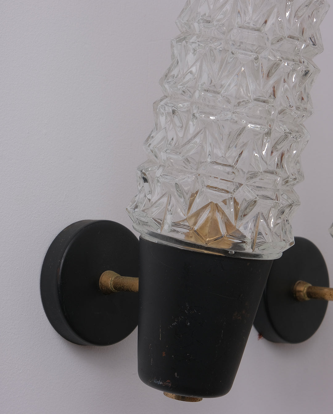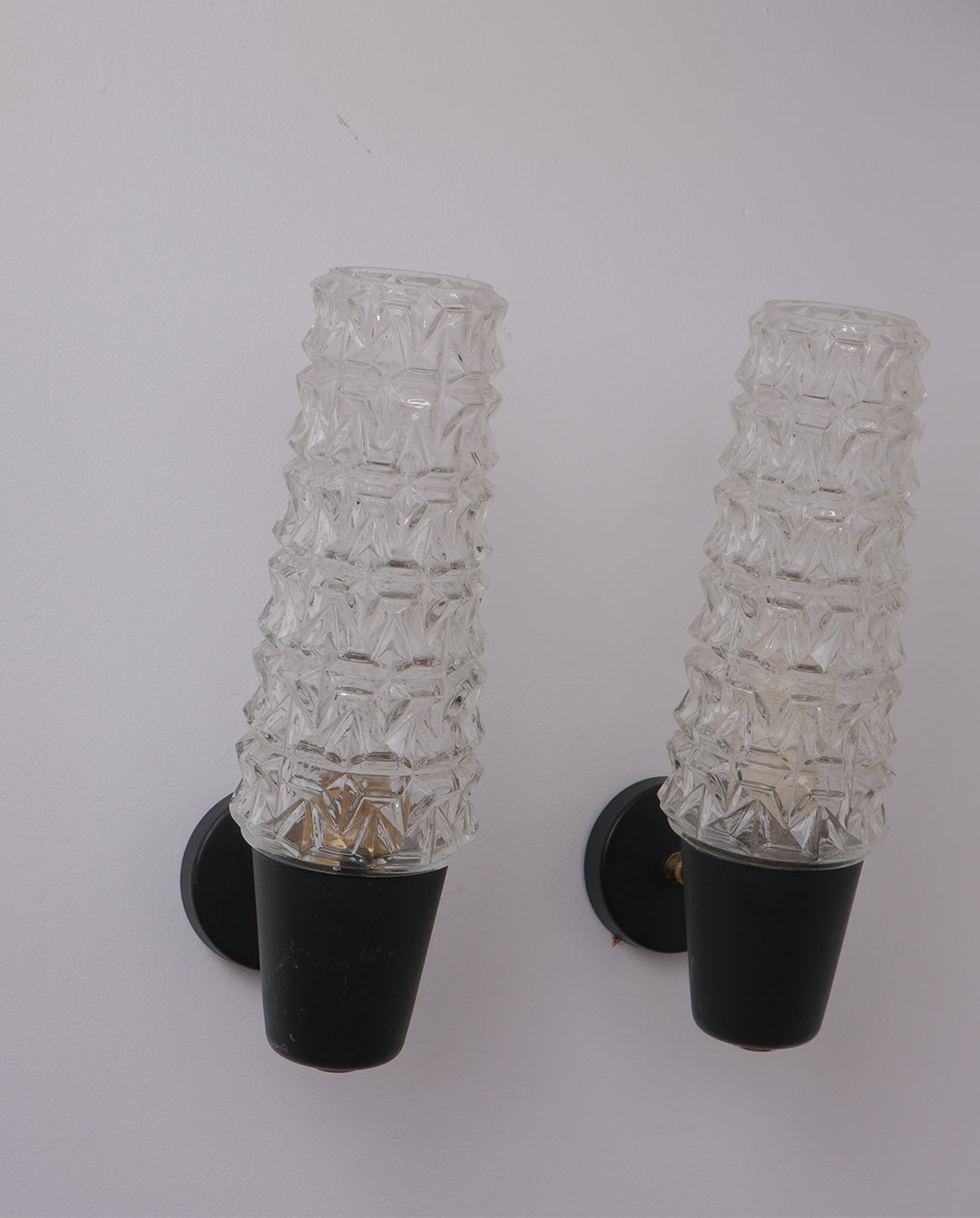 Base en métal dépoli noir et abat-jour en verre à facetetes.