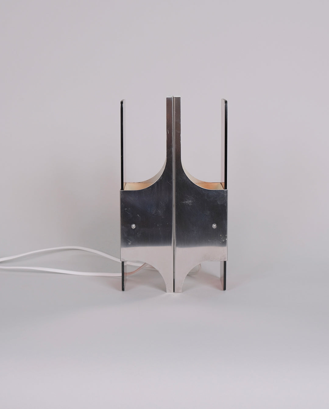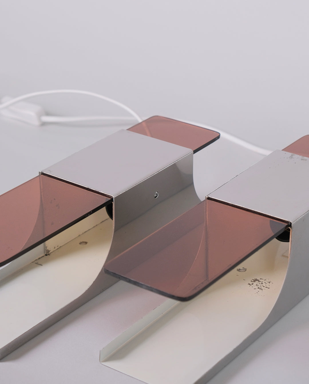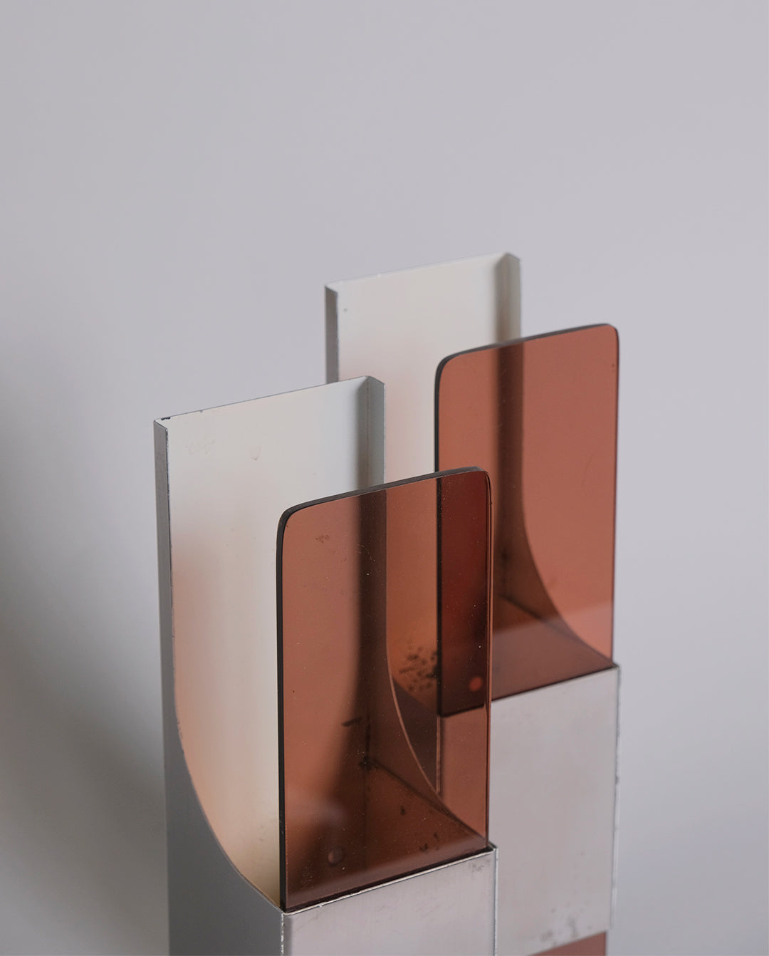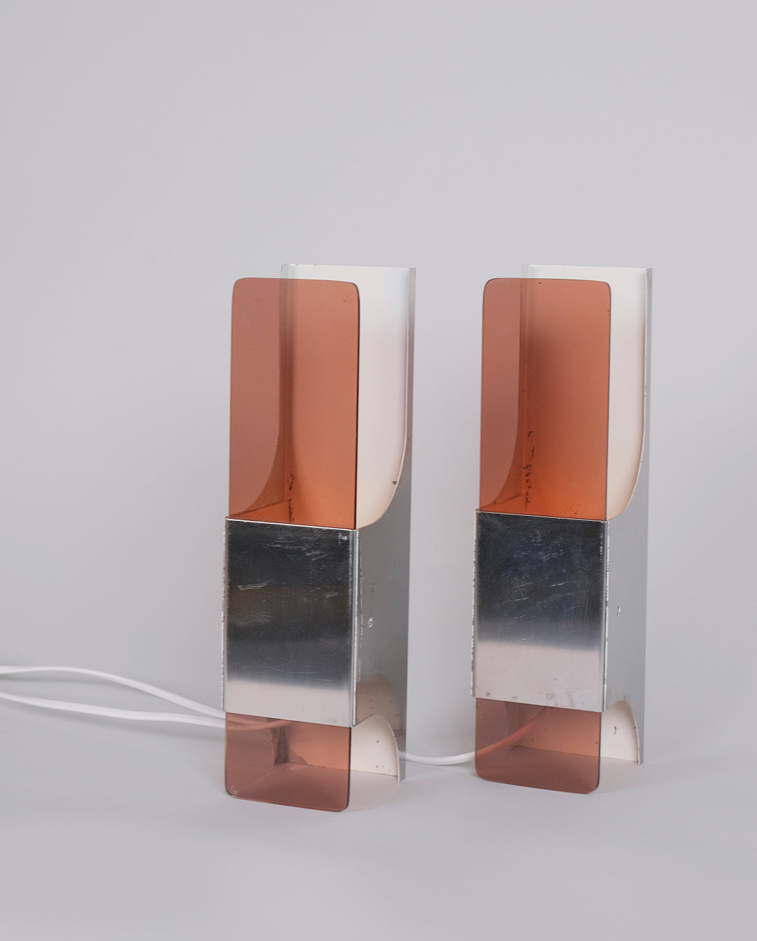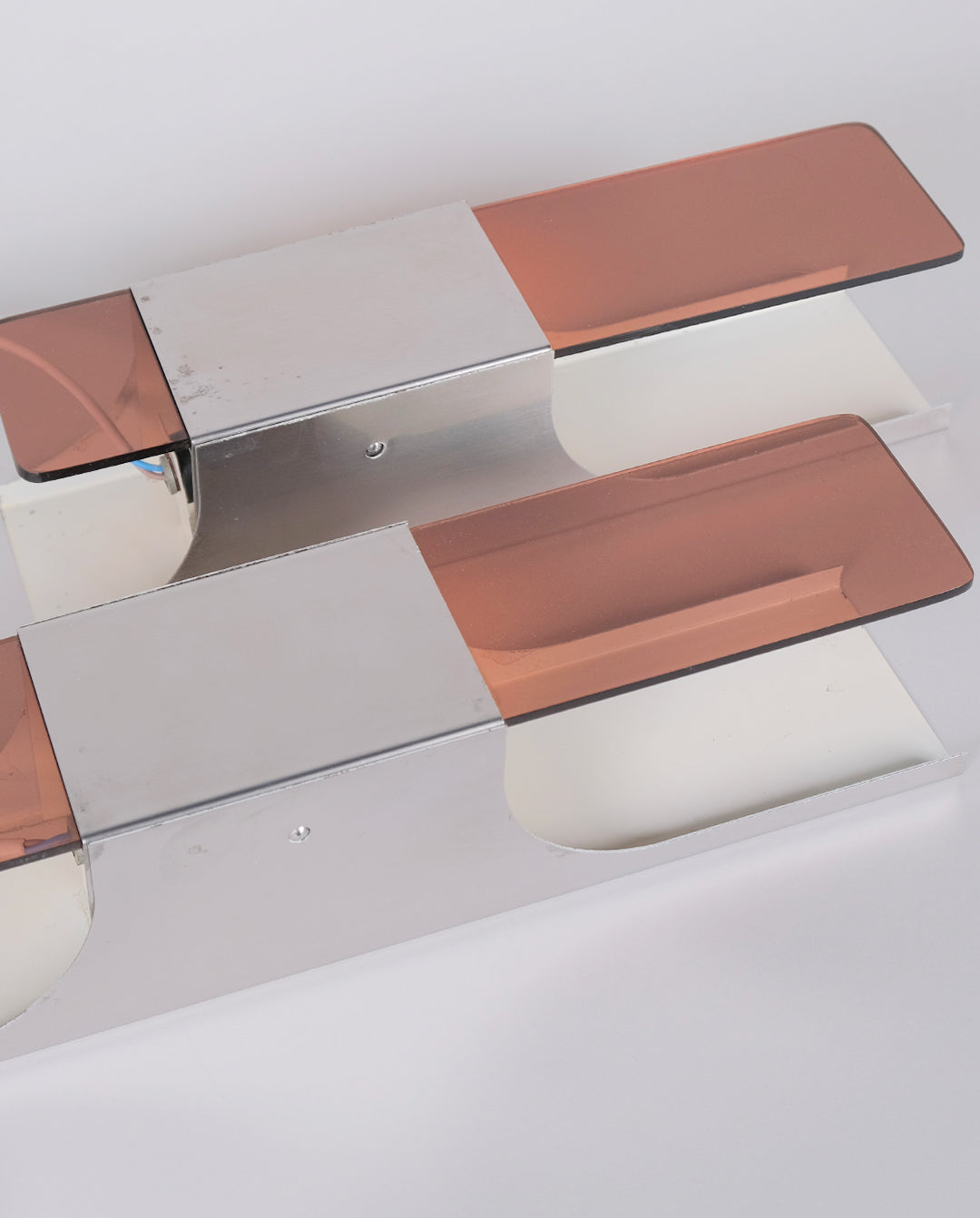 Paire d'appliques space age en acier et plexiglas fumé.