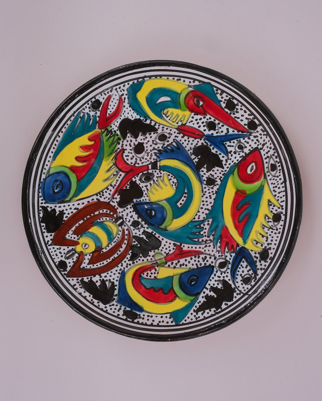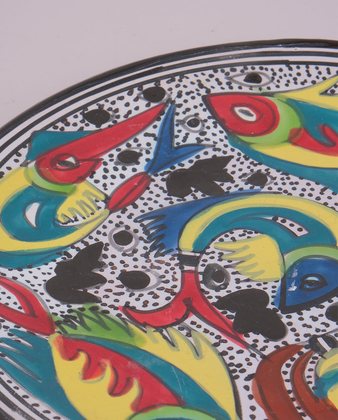 Assiette décorative en céramique à motifs animaliers peints à la main, Tunisie