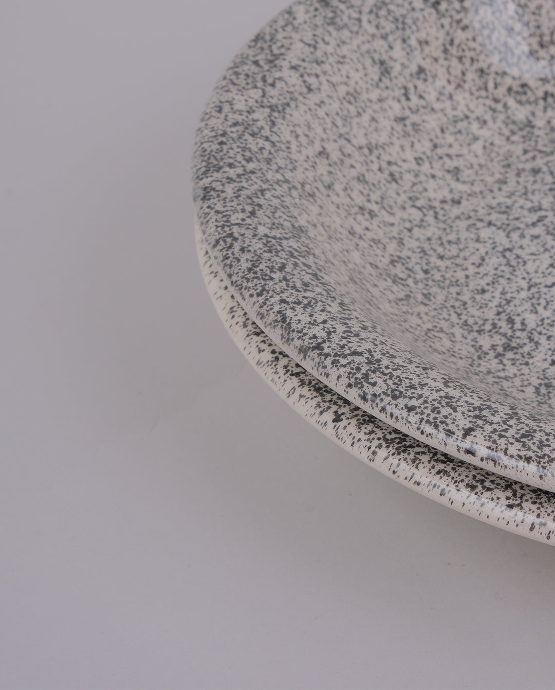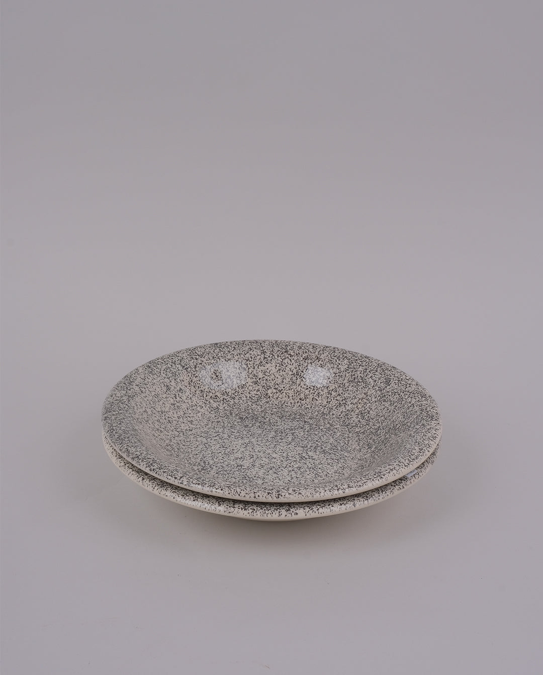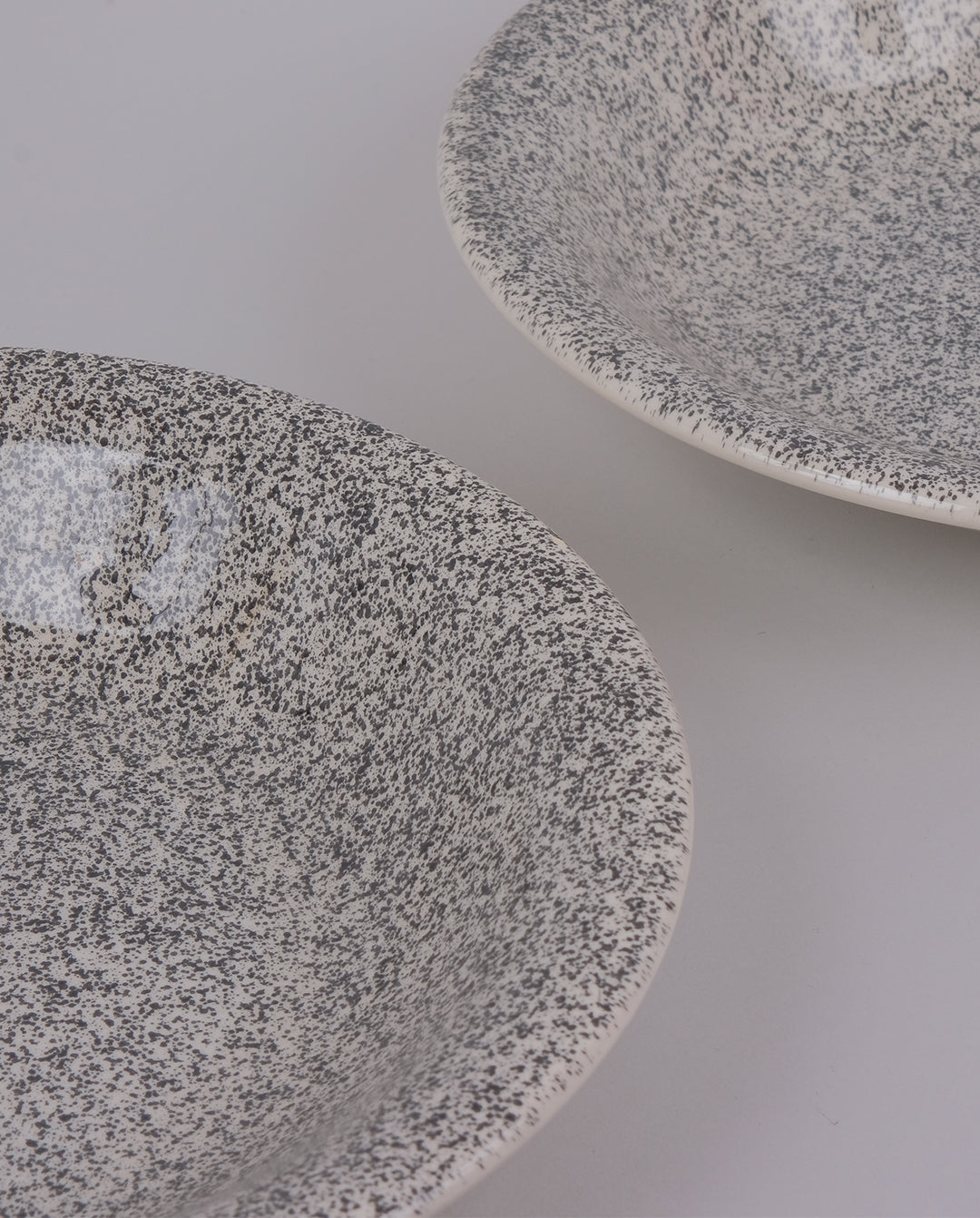 Ensemble de 2 assiettes creuses en faïence mouchetées noir sur fond blanc