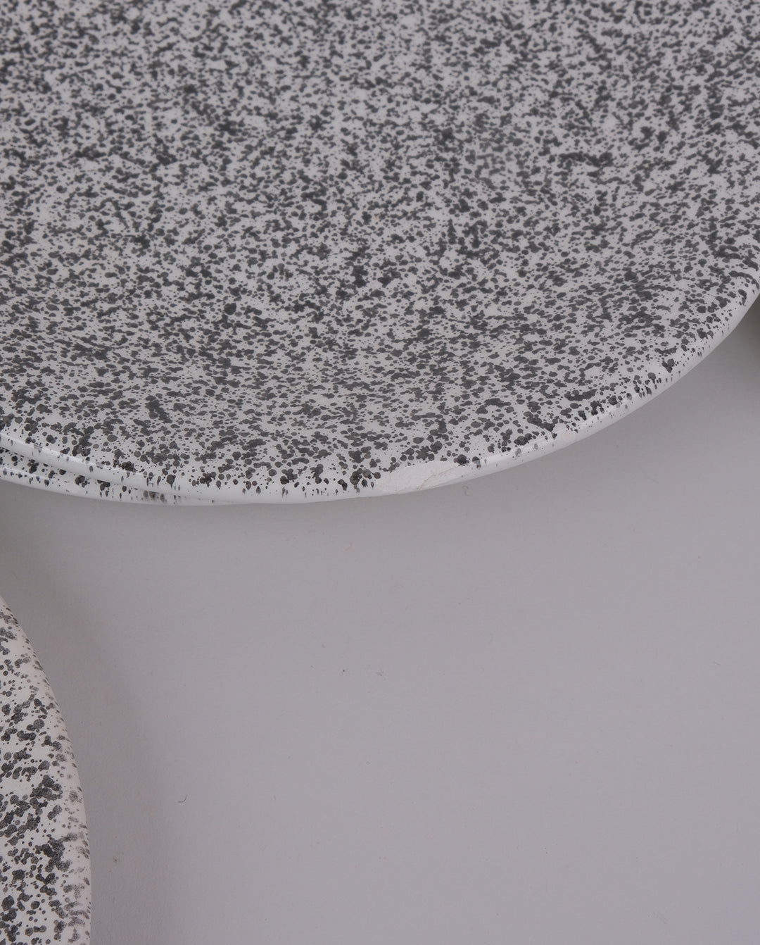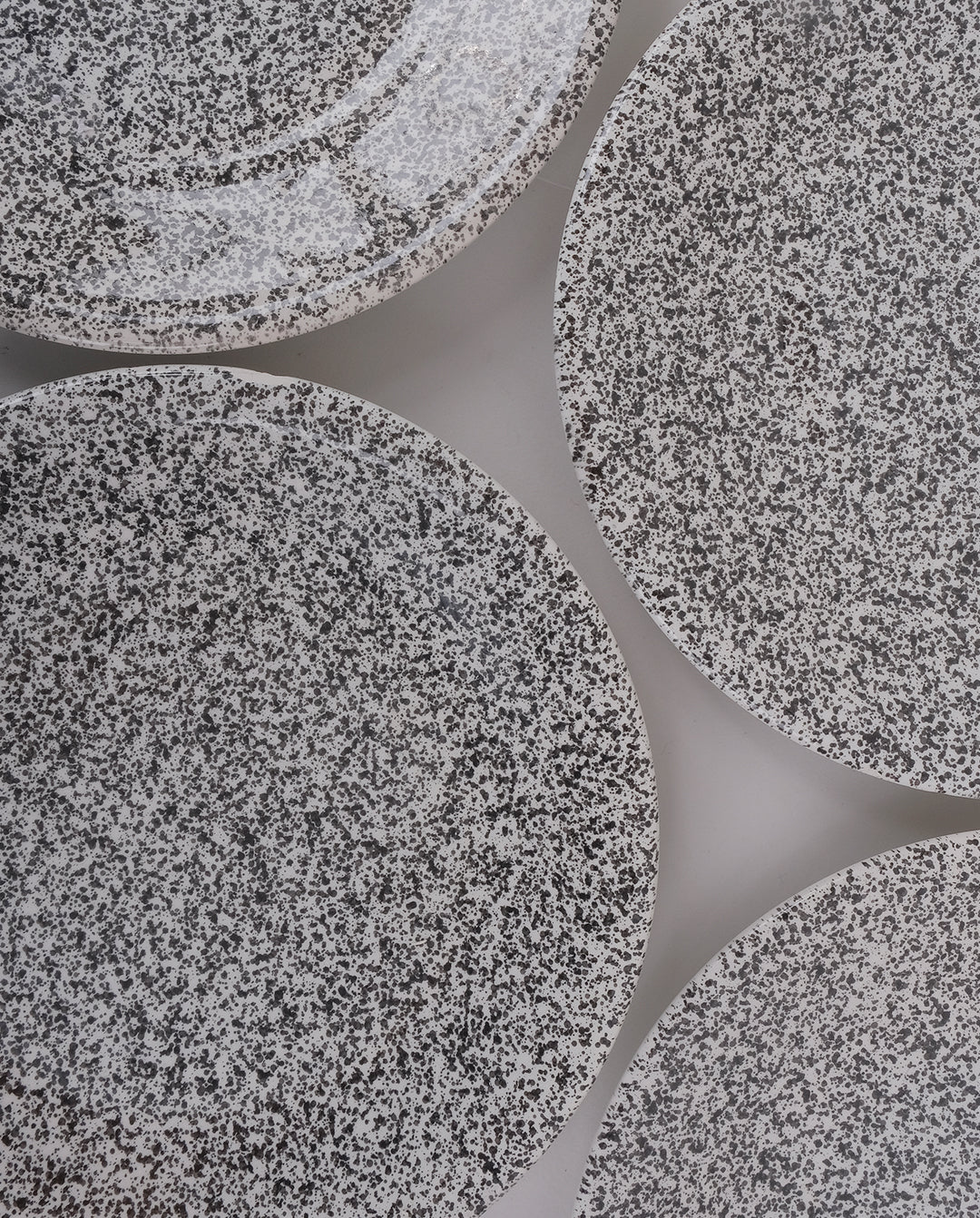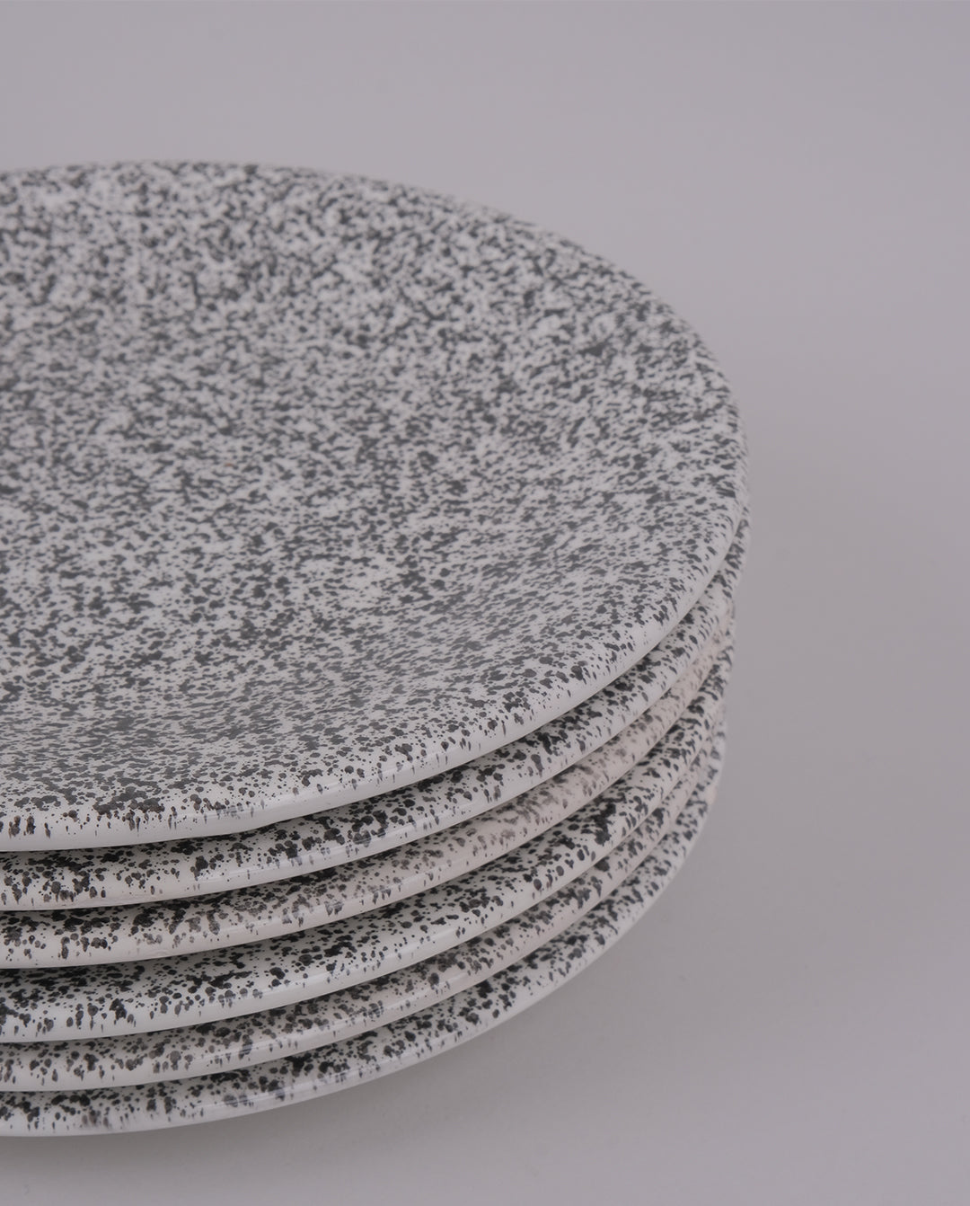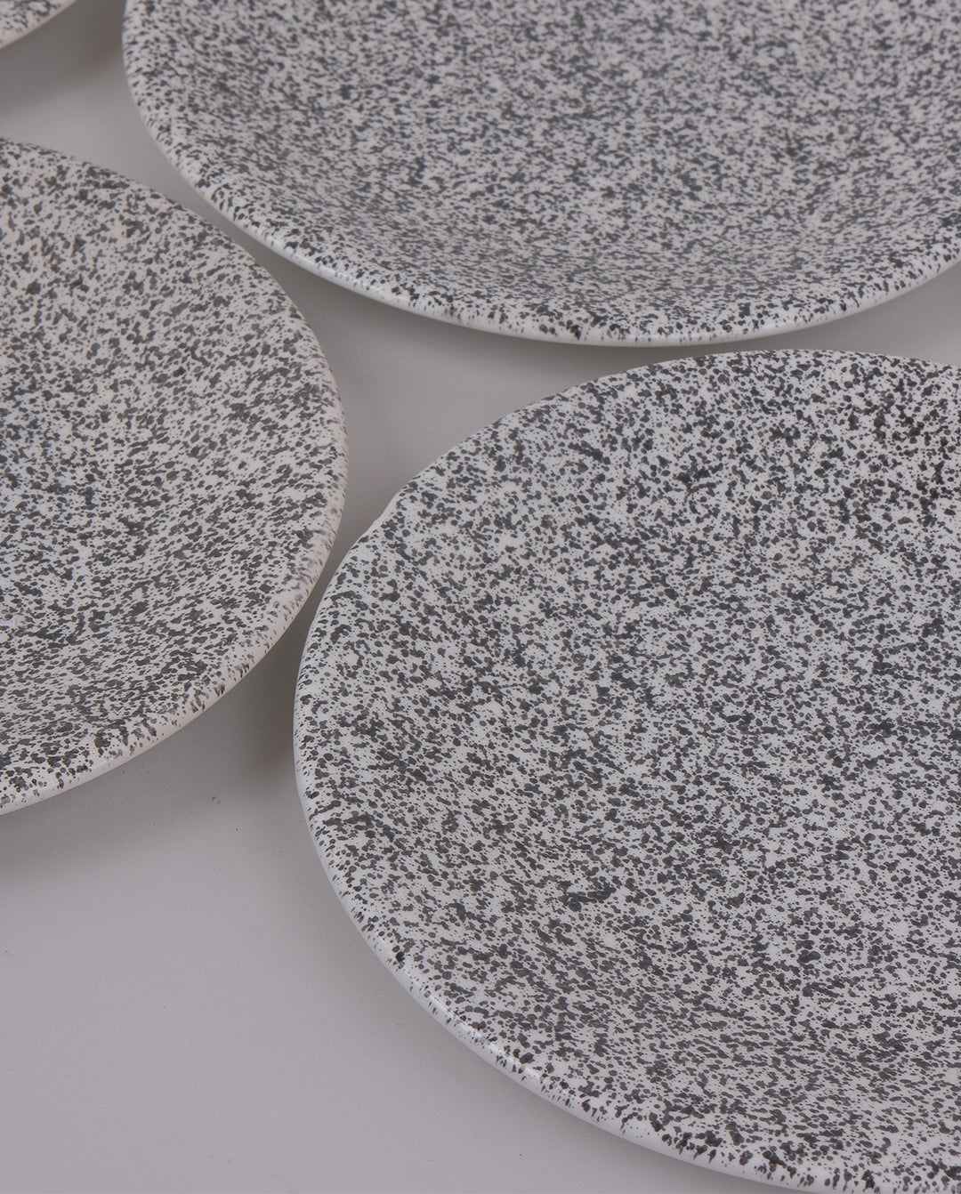 Ensemble de 6 assiettes plates en faïence mouchetées noir sur fond blanc