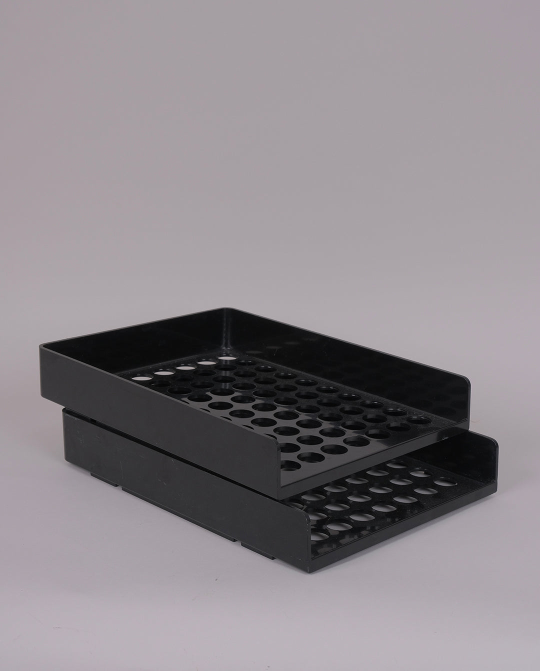 Paire de bannettes de rangement ou porte-documents en plastique noir à motif perforé par Roger Tallon, pour Art et Bureau, années 70