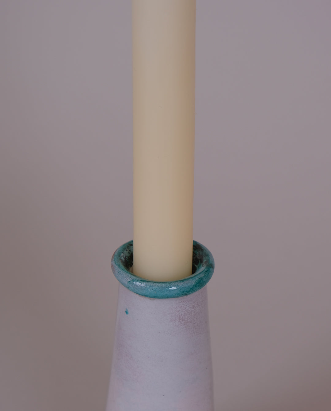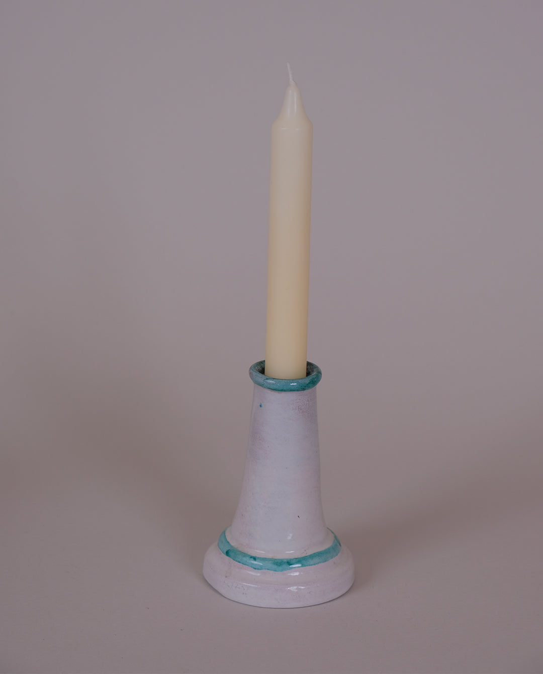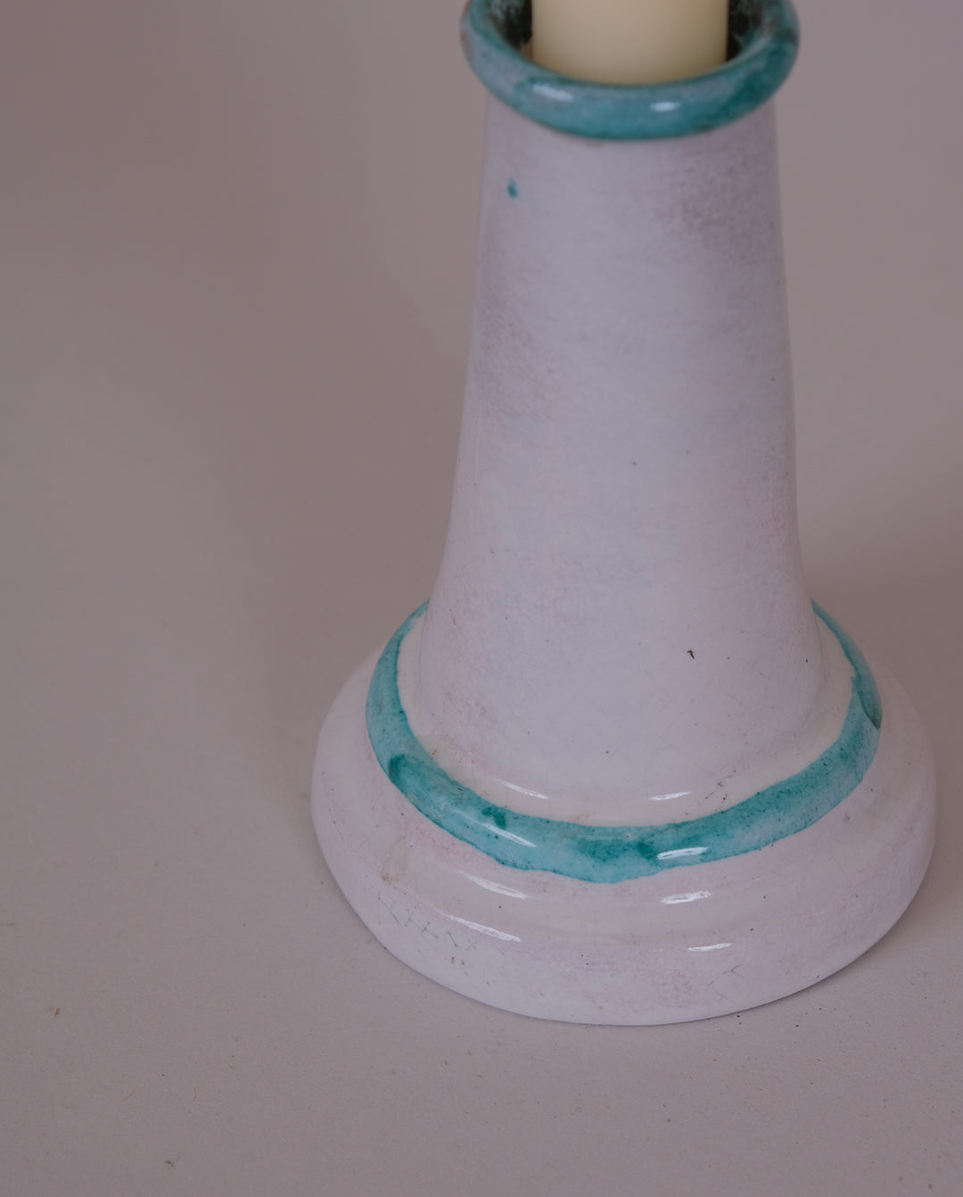 Bougeoir en céramique signé au dessous avec un liseré bleu-vert.