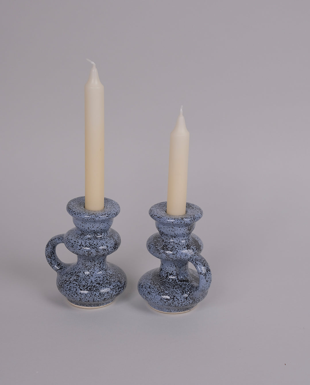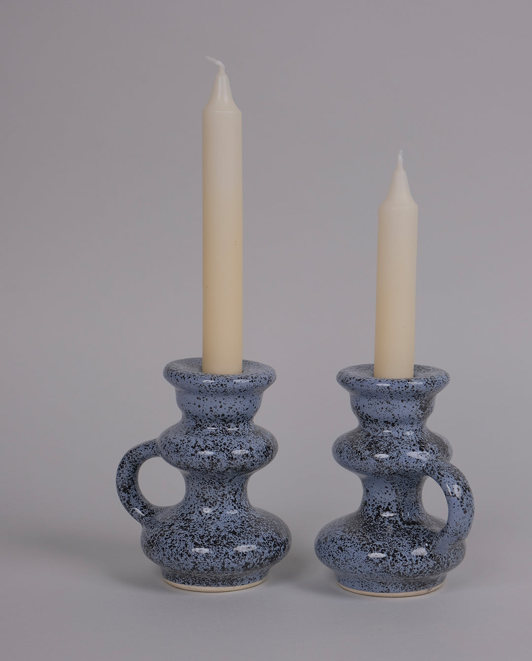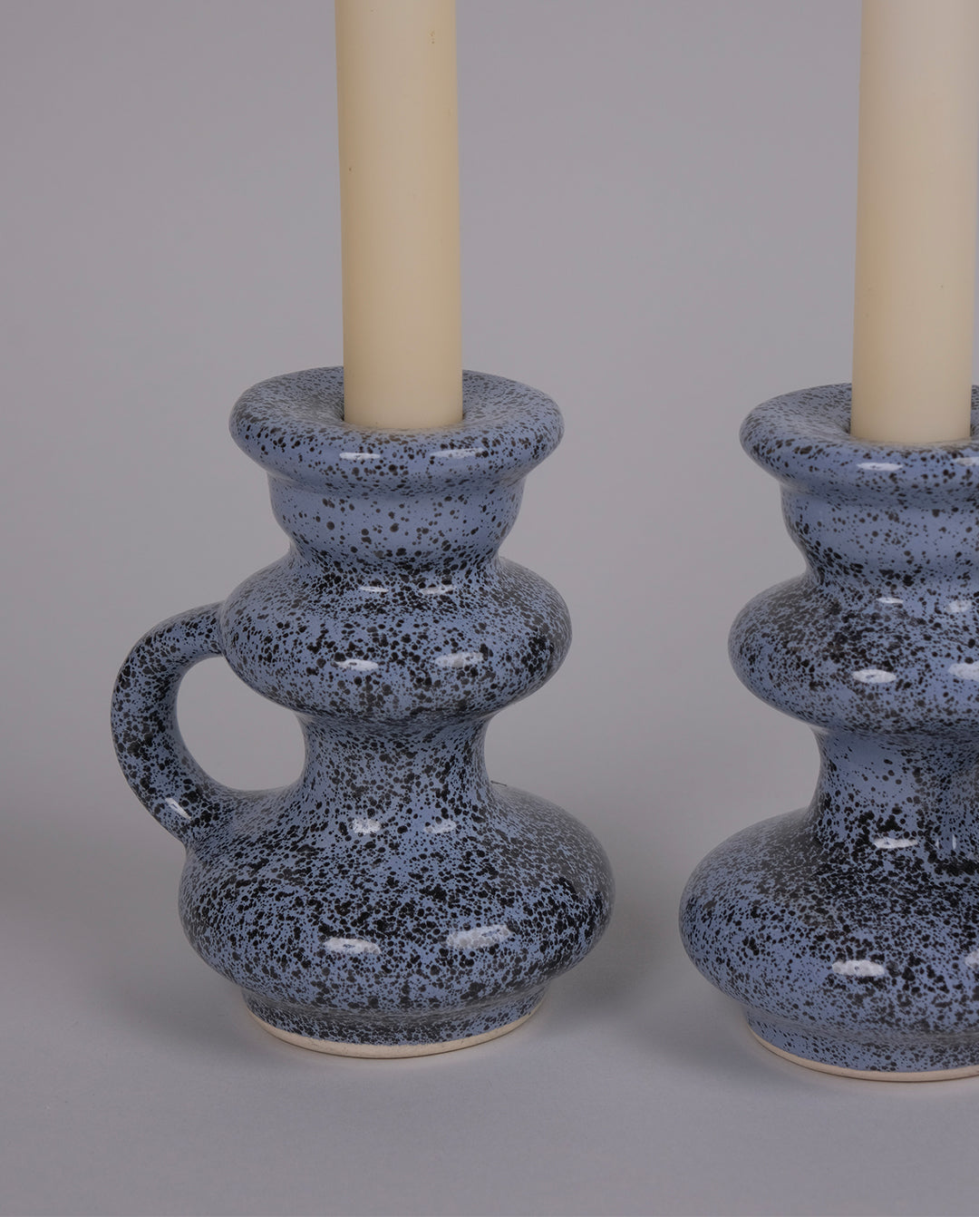 Duo de bougeoirs en faïence mouchetée vintage.