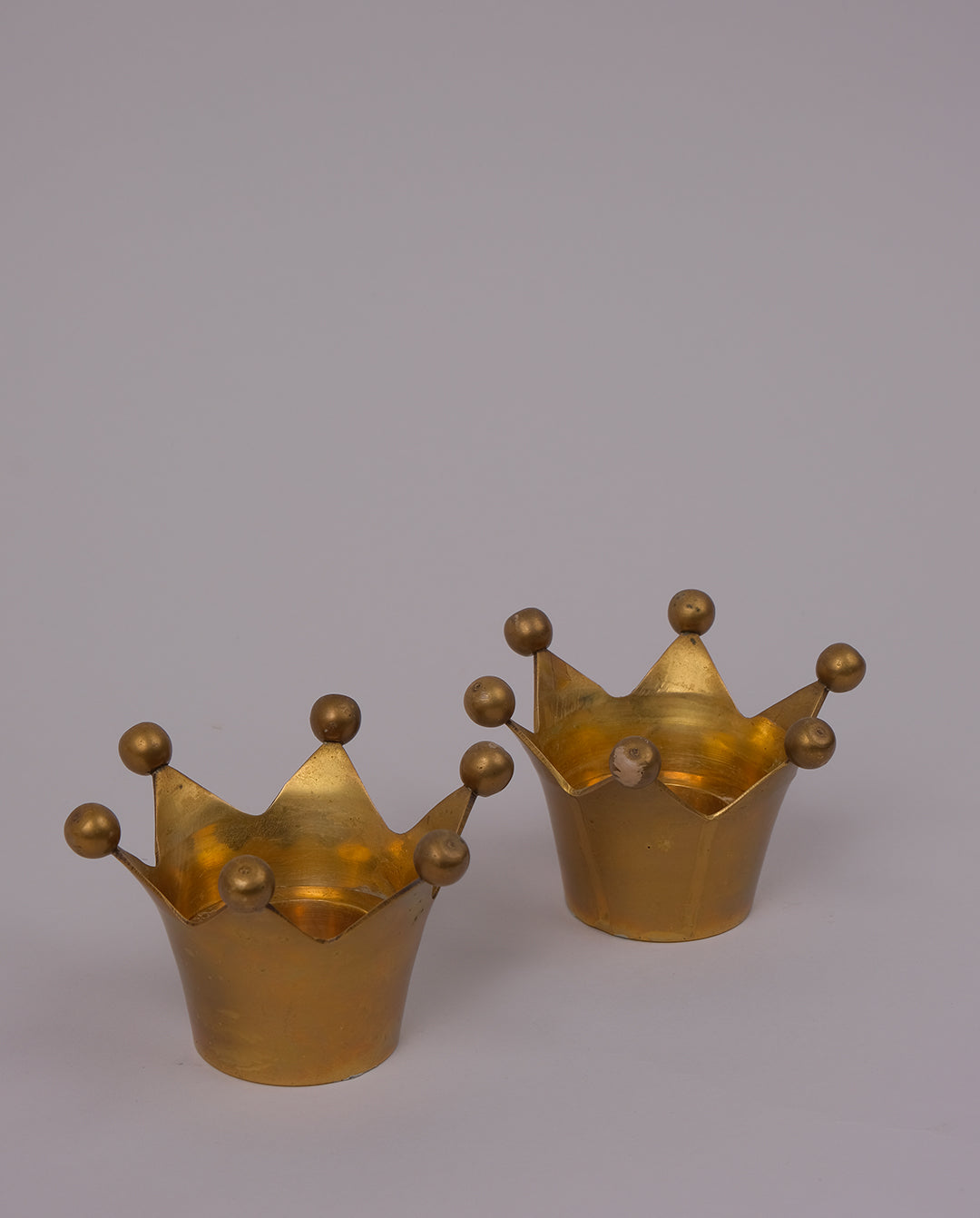 Paire de bougeoirs en laiton en forme de couronne
