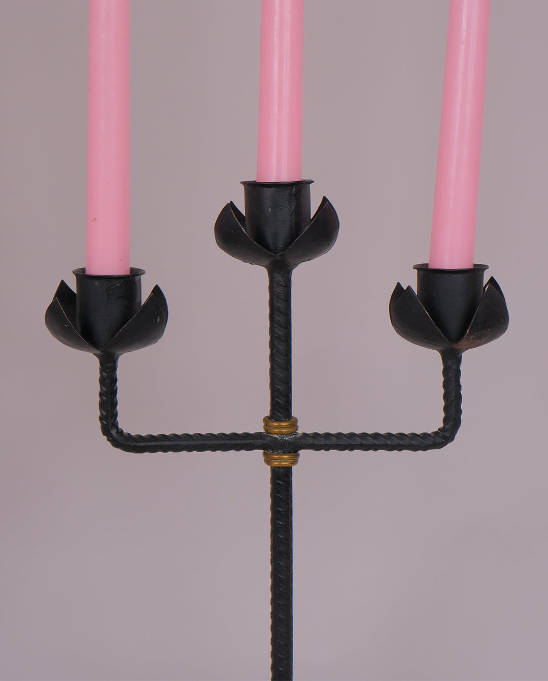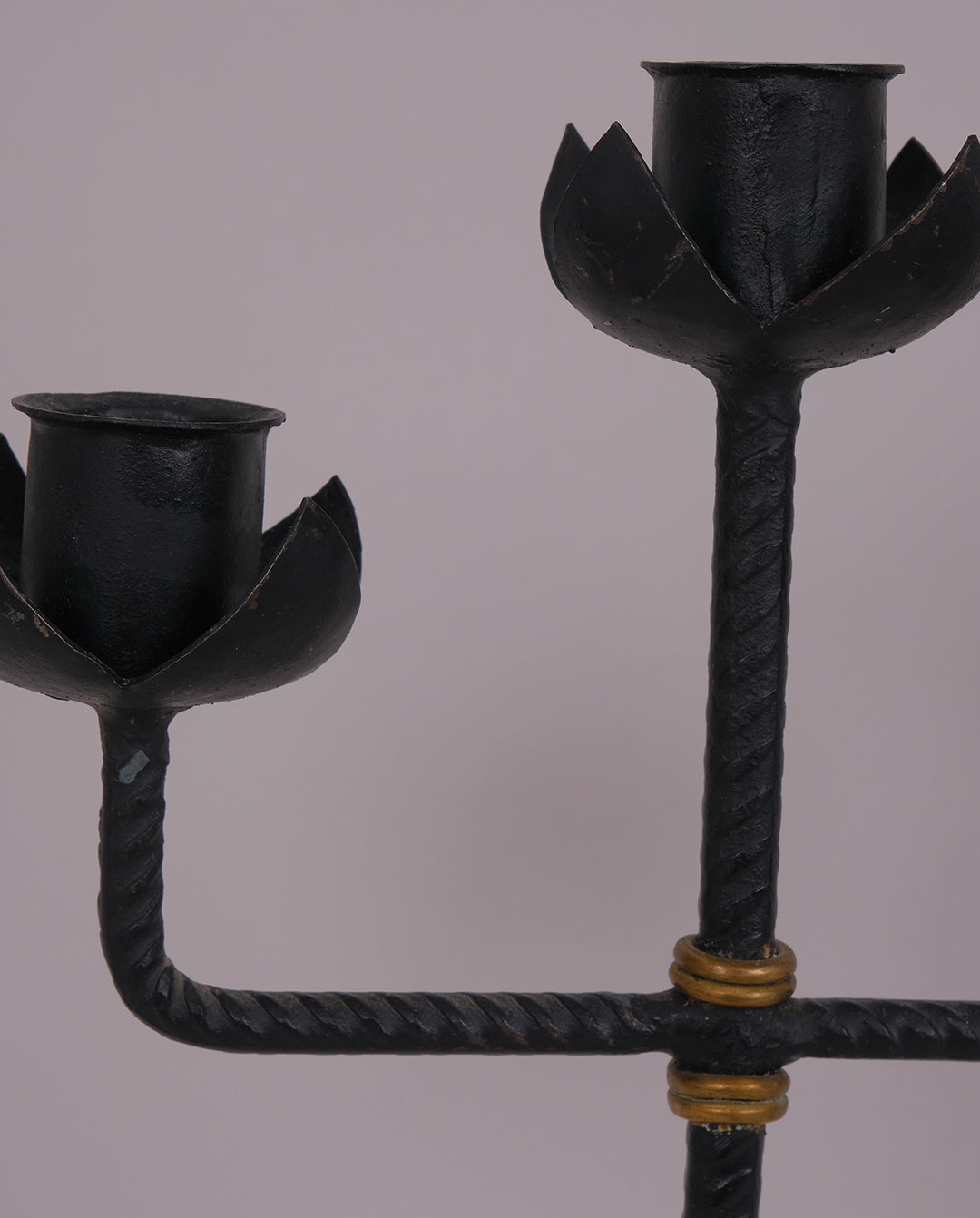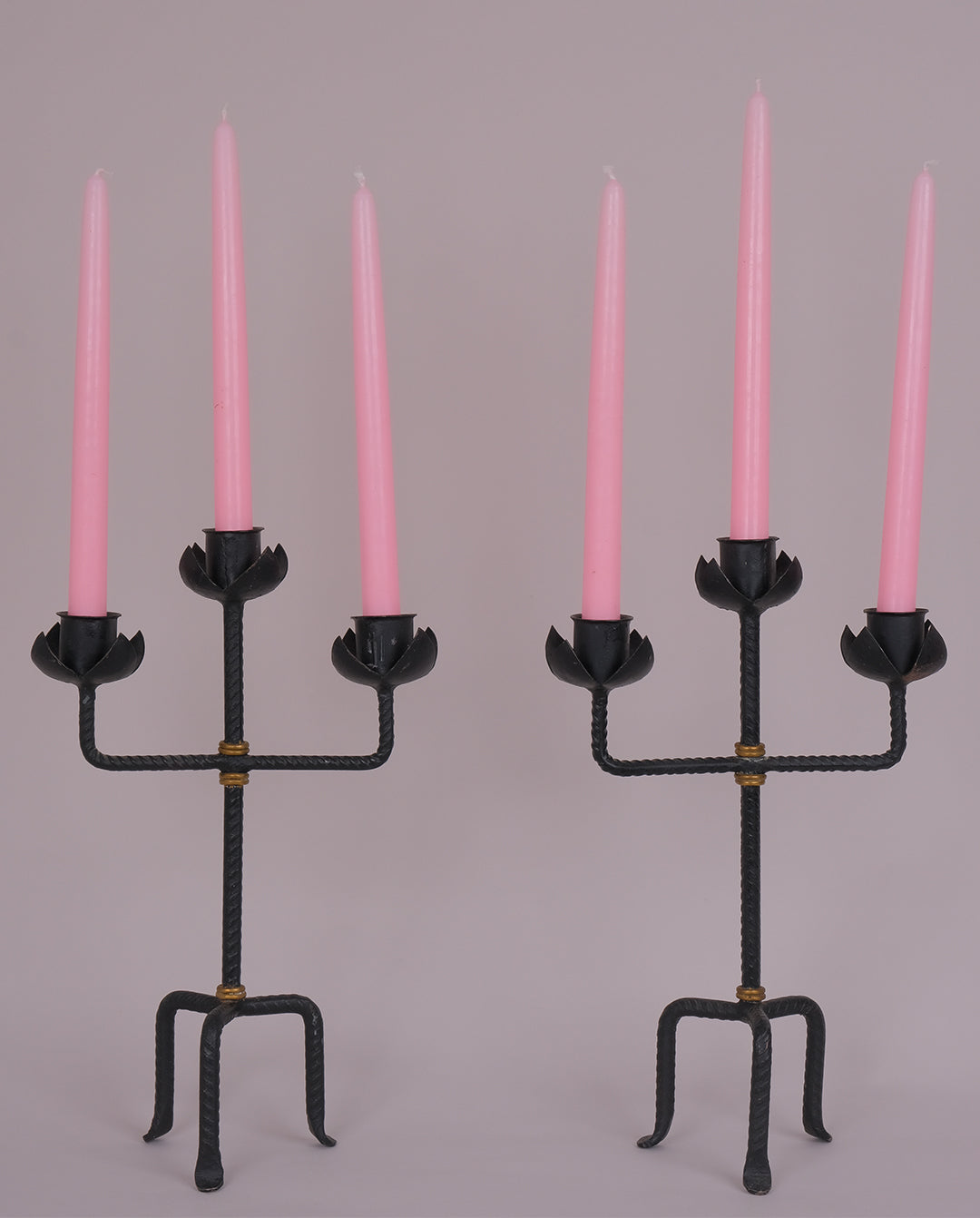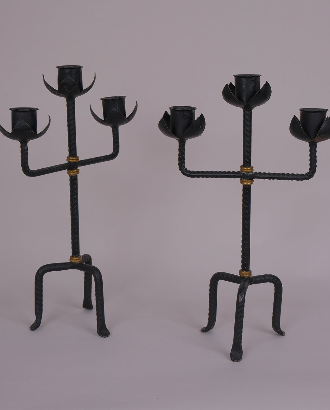 Paire de grands bougeoirs en fer forgé au style brutaliste, vintage, années 60