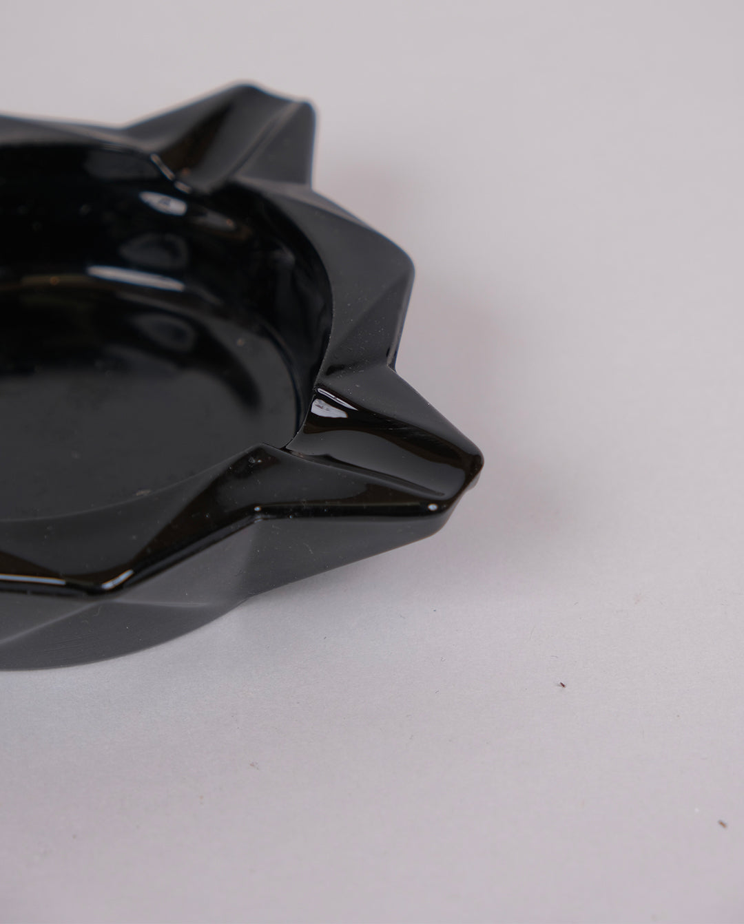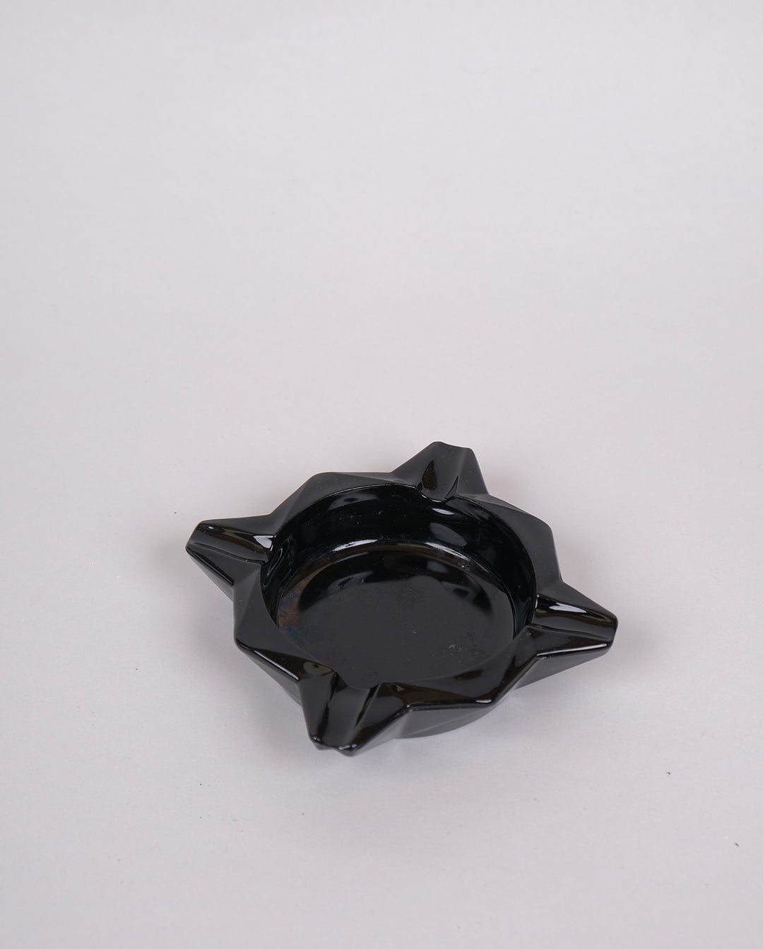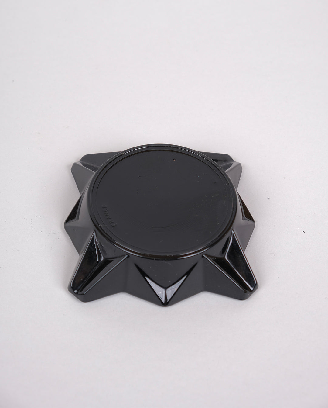 Cendrier en verre teinté noir moulé en forme d'étoile.