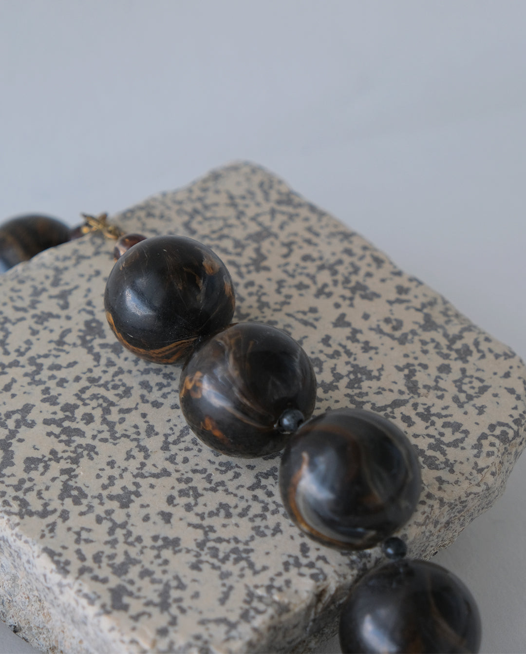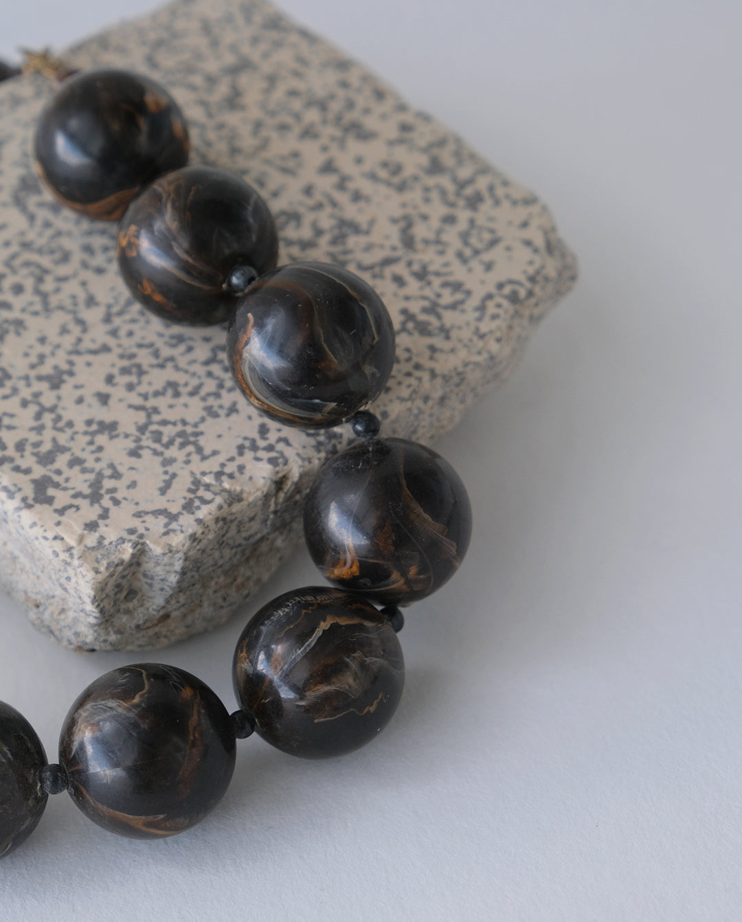 Collier proche du cou composé de perles de 2 cm de diamètre en résine plastique rondes — effet marbré.