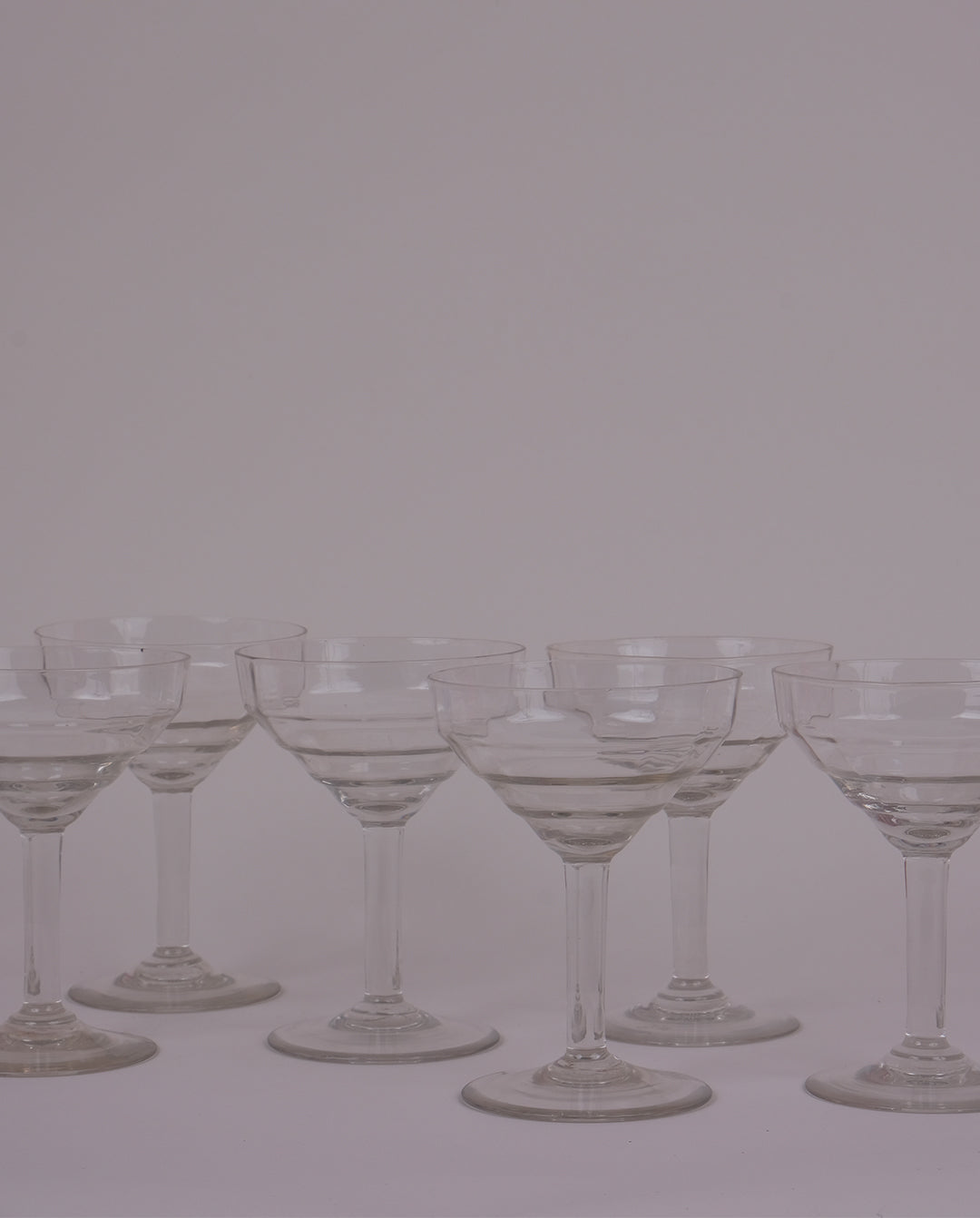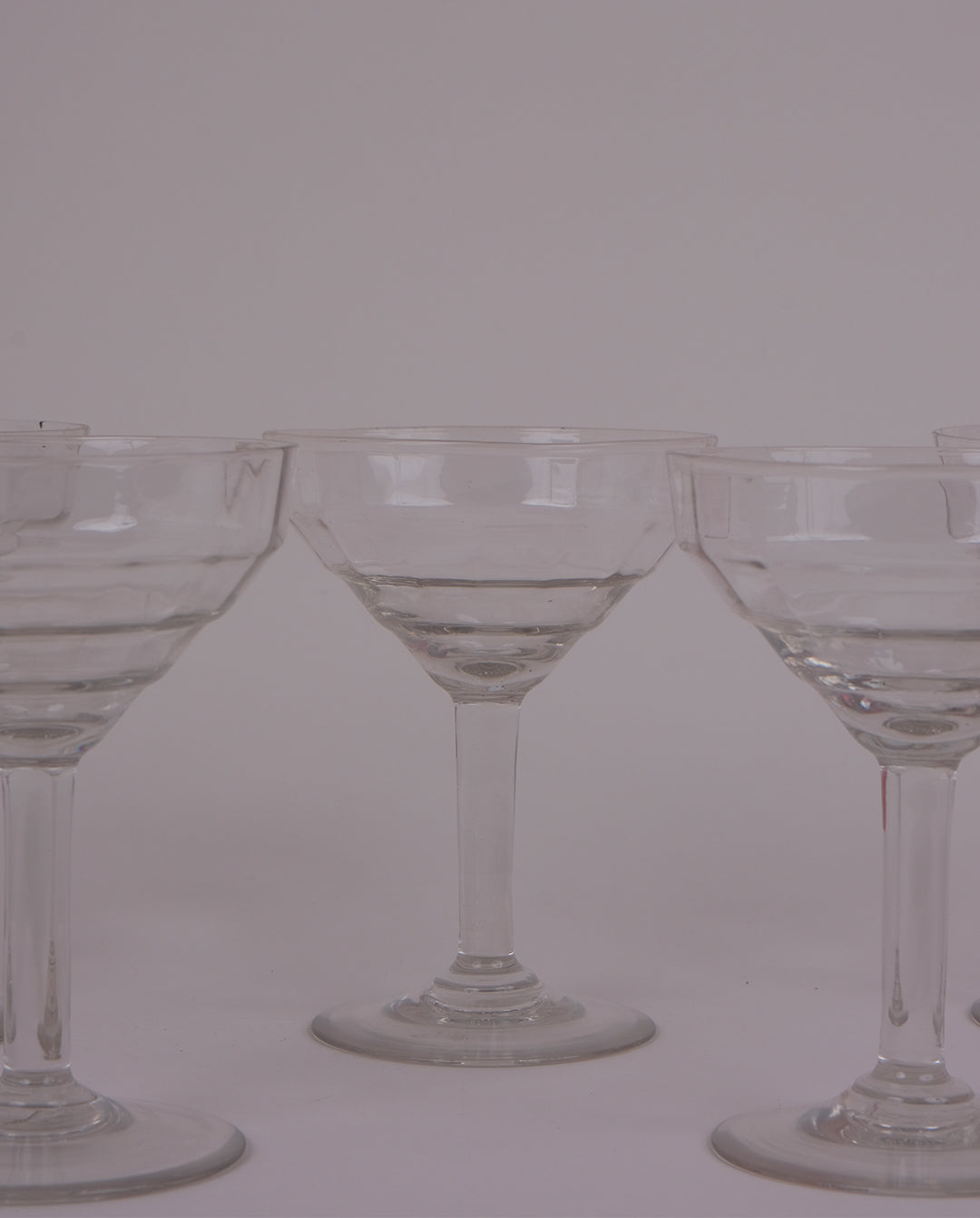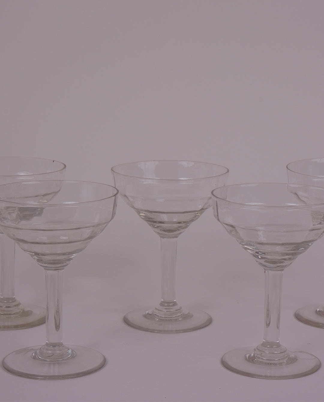 Ensemble de 6 coupes à champagne ou cocktail en verre facetté, style art déco