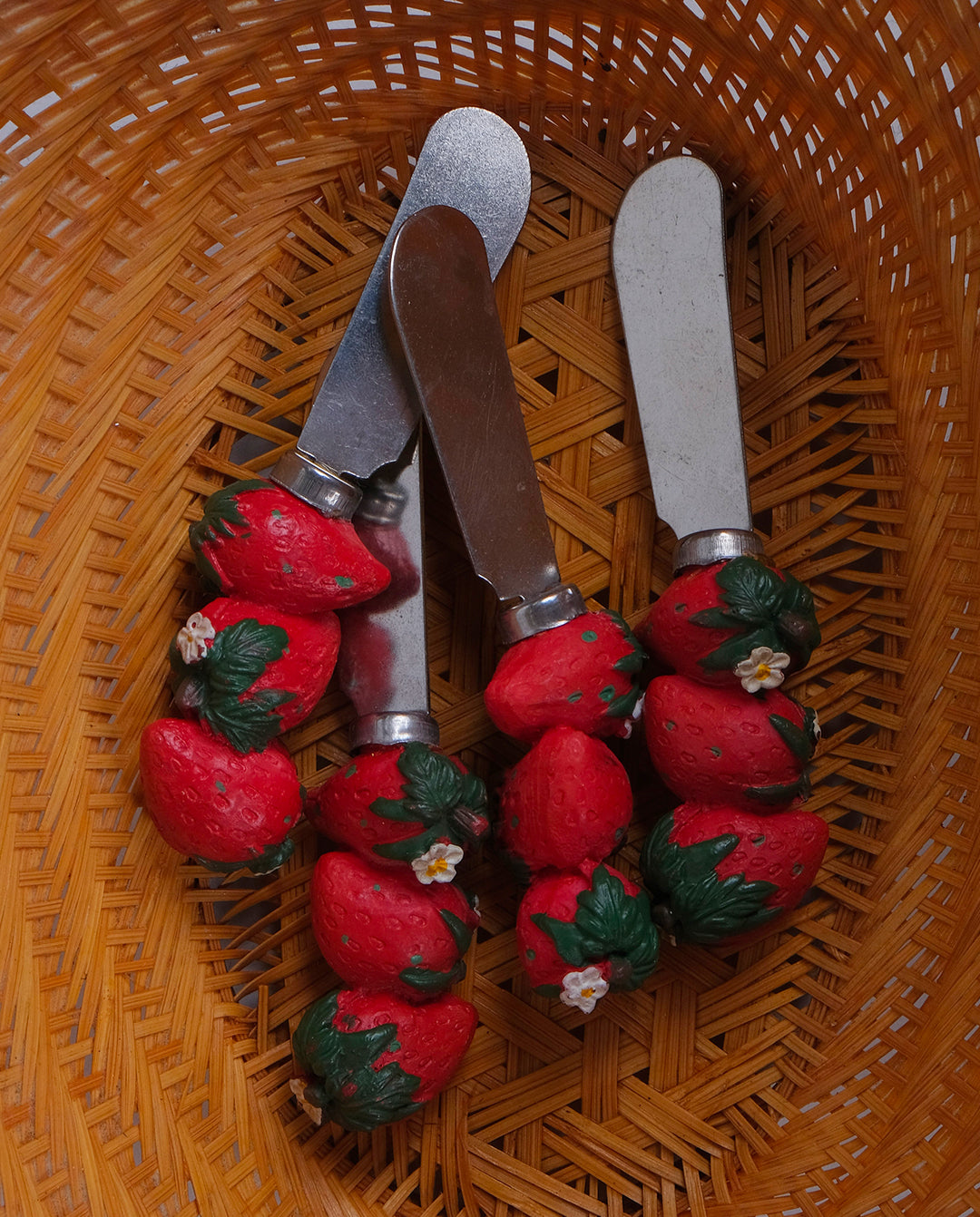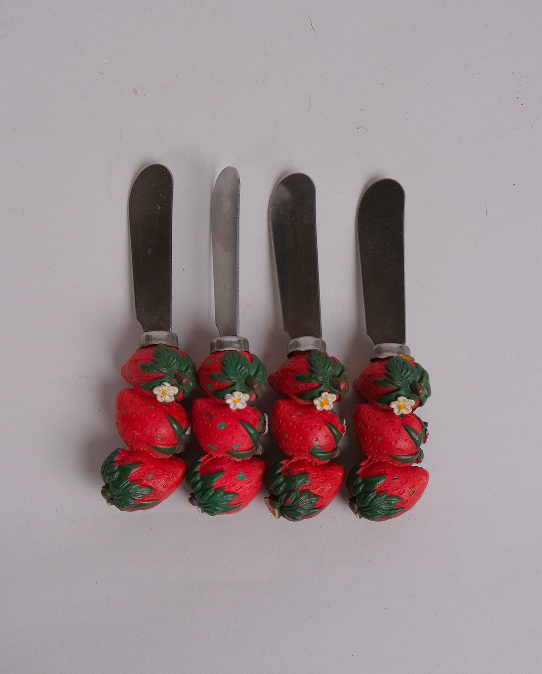 Ensemble de 2 couteaux à beurre à manche en forme de fraise.