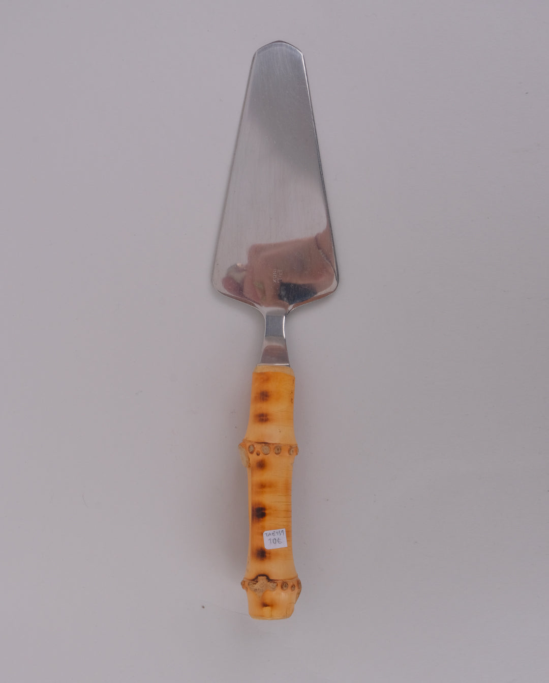 Pelle à tarte et couteau à fromage en inox et manche en bambou.
