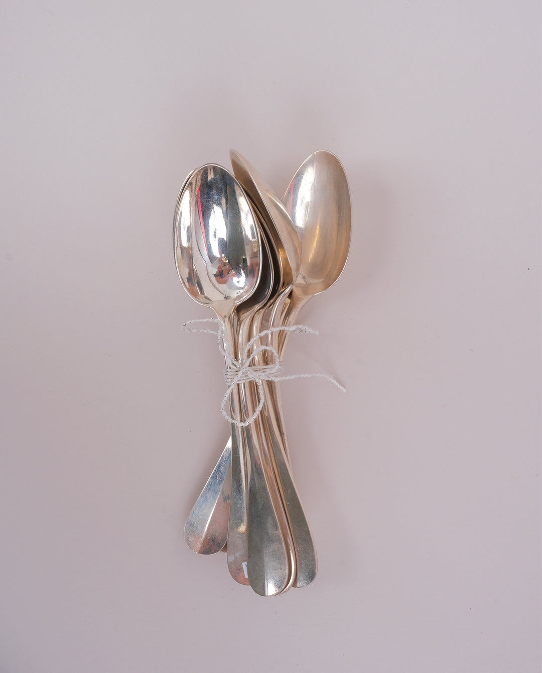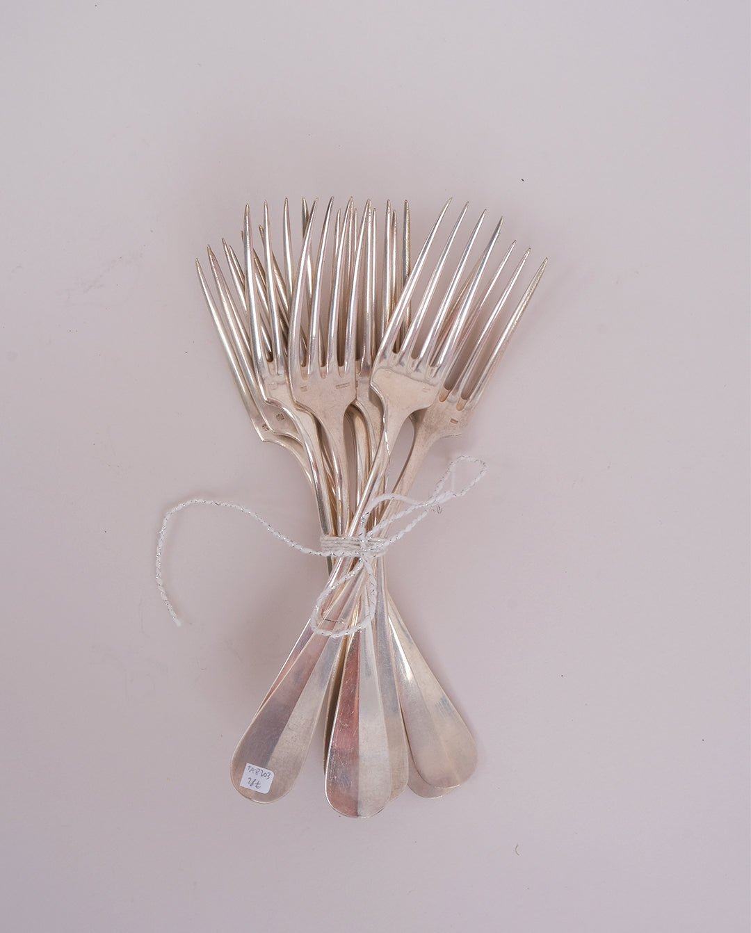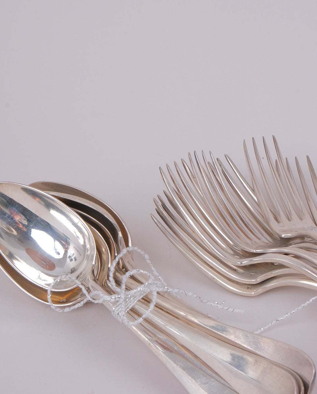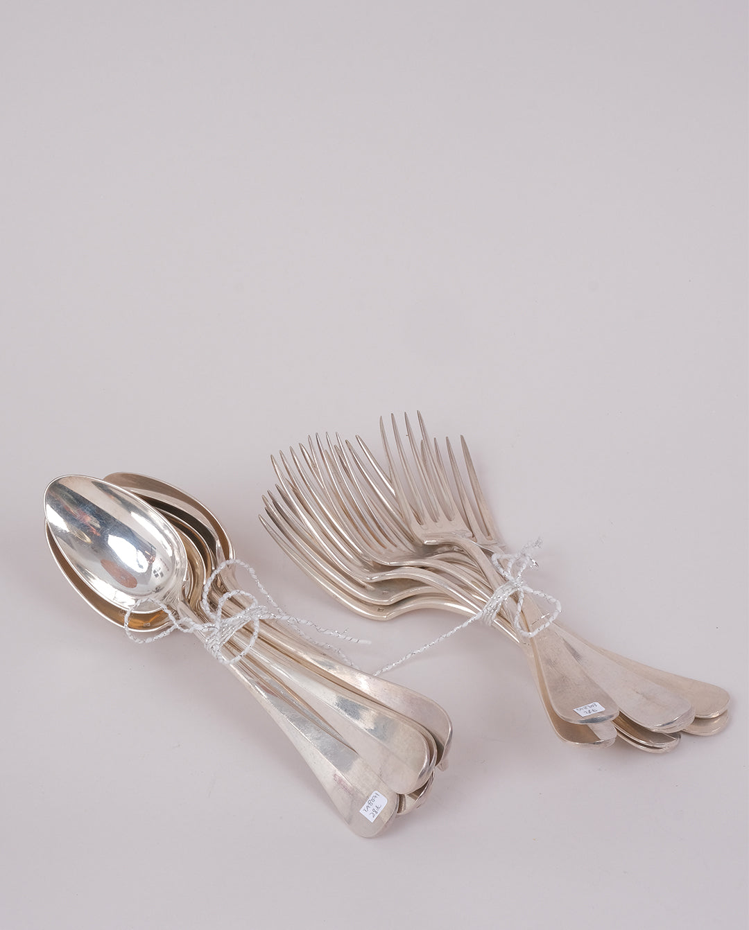 Ensemble de 8 cuillères à soupe ou de 8 fourchettes en métal argenté, poinçon ancre.