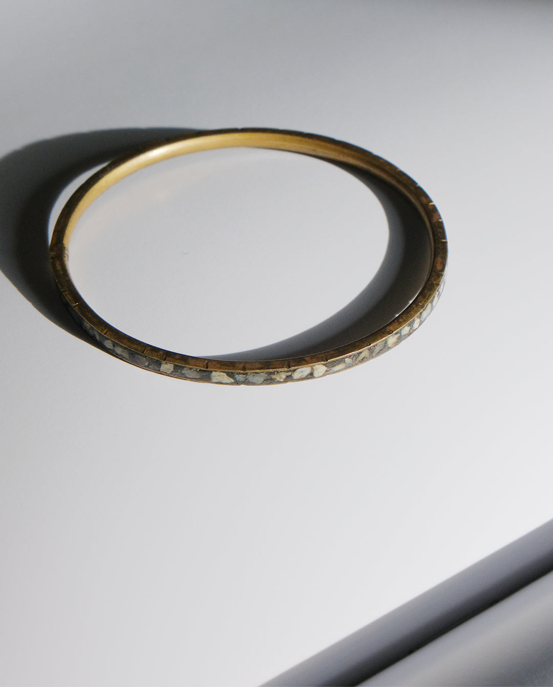 Jonc en métal doré avec pierres colorées incrustées.