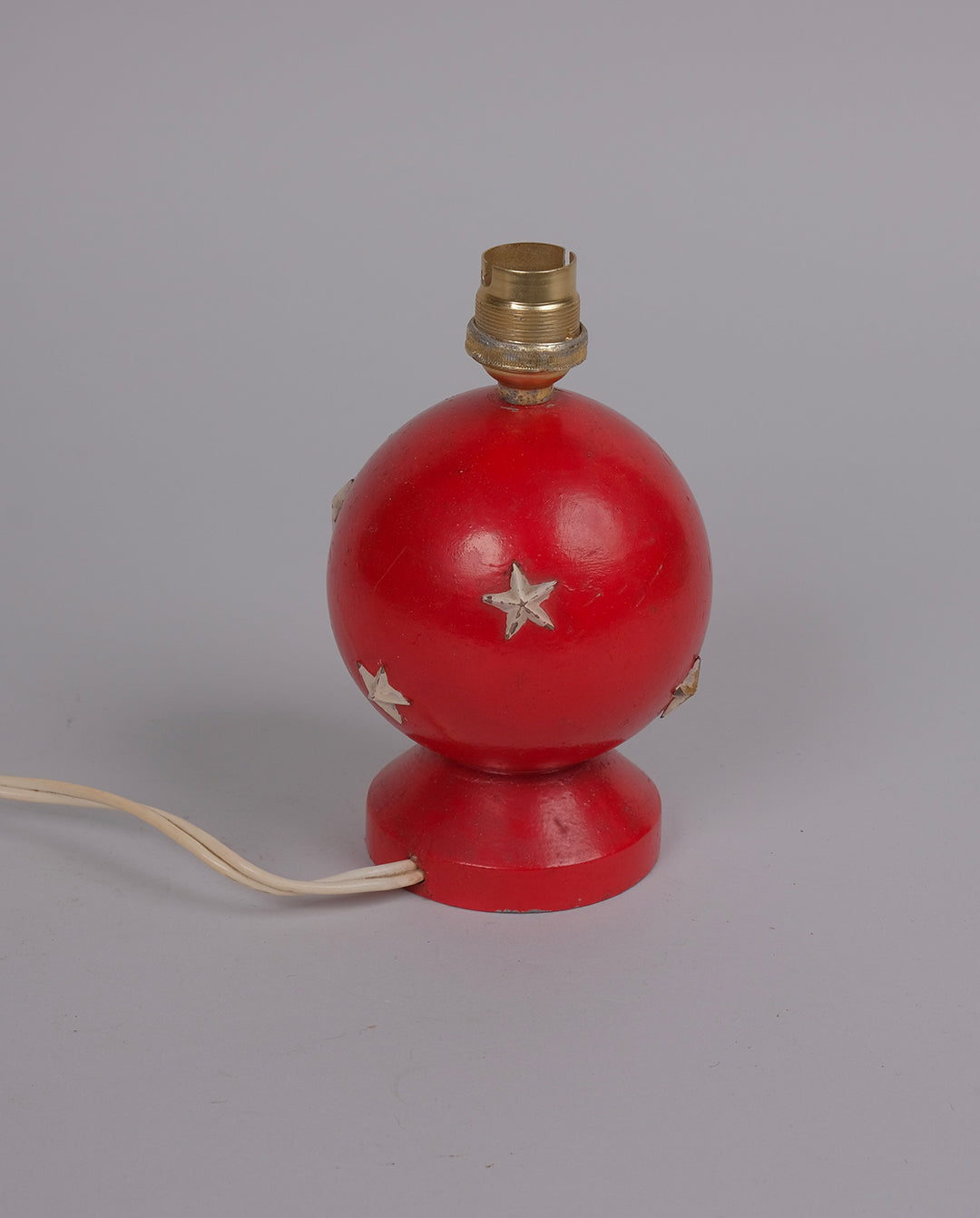 Pied de lampe en bois peint et décors d'étoiles en bois sculpté rajoutés.