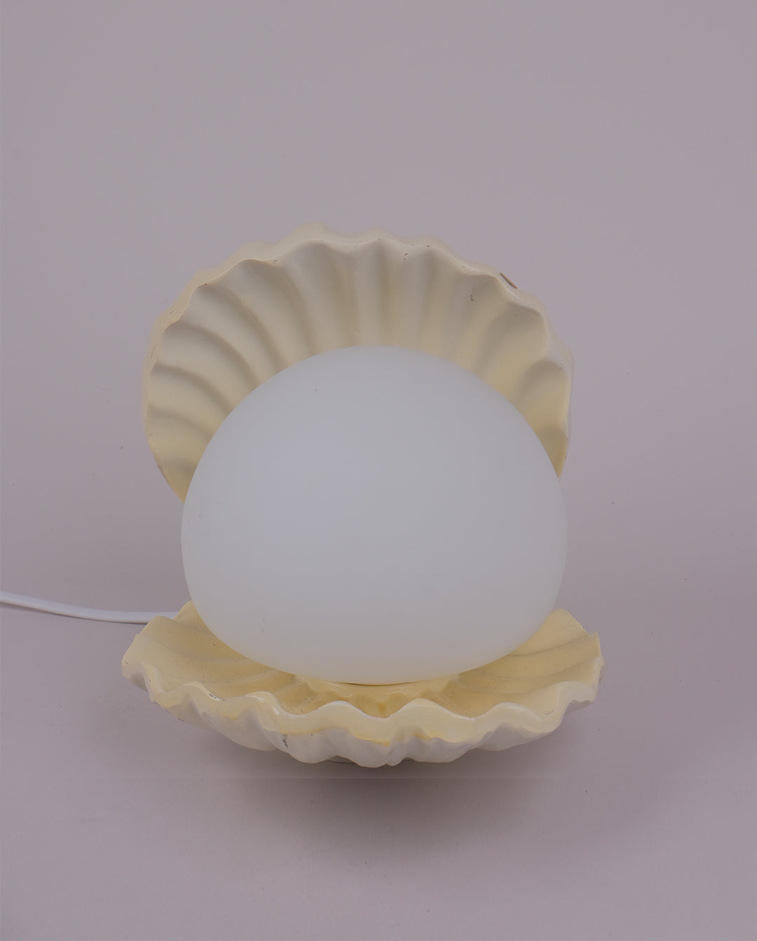 Lampe vintage en céramique en forme de coquille st-jacques — demi-sphère en déverre poli rapportée.
