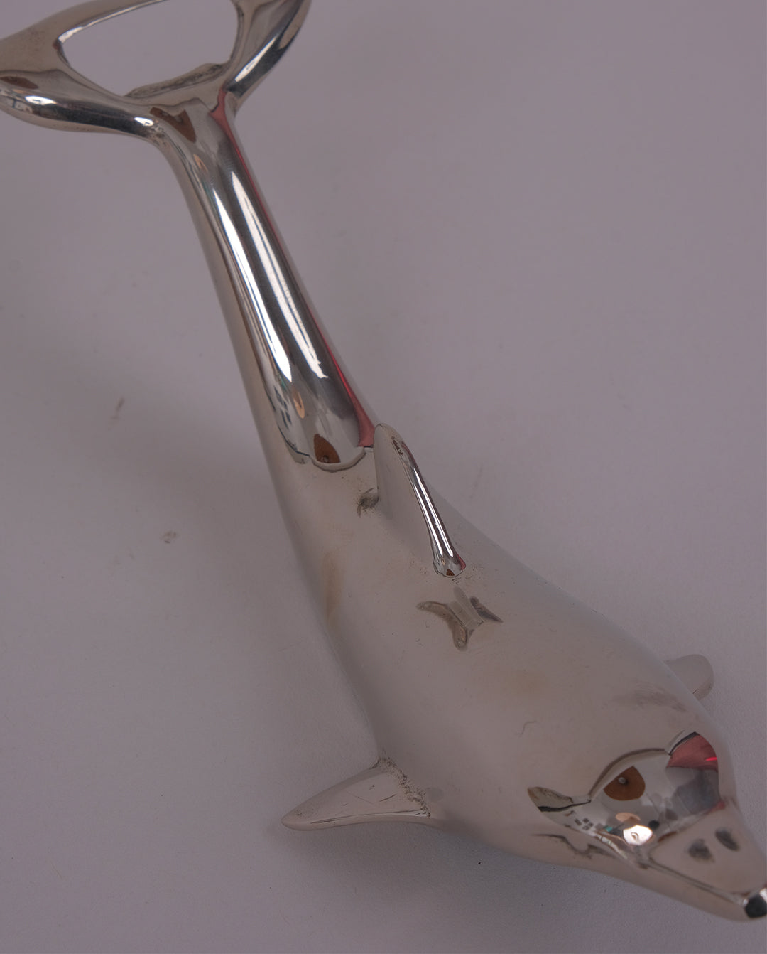 Ouvre bouteille zoomorphe vintage en métal argenté.