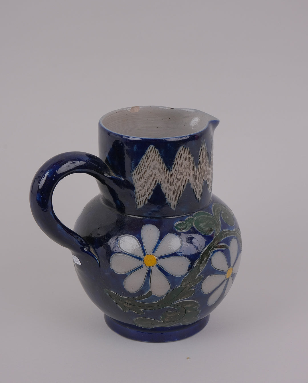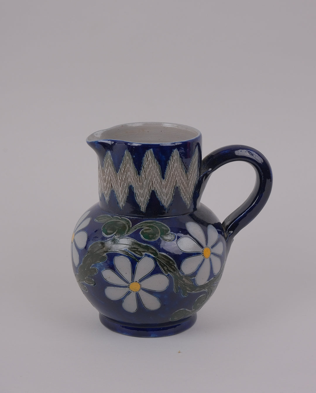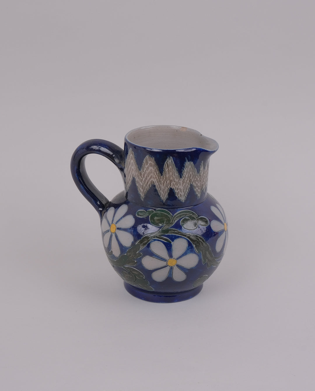 Pichet en grès gris d'Alsace, décor de fleurs peint à la main