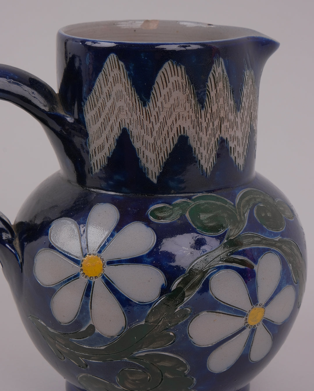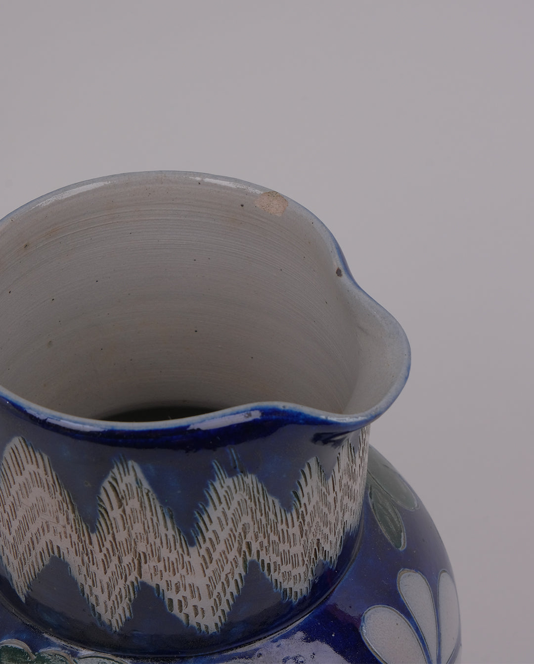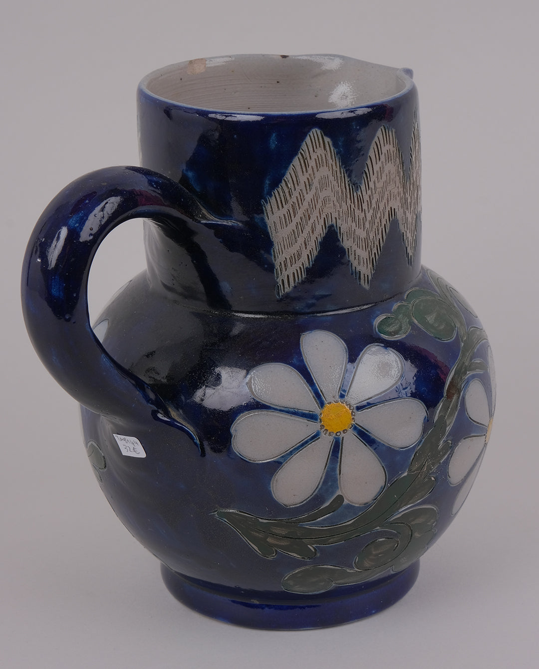 Pichet en grès gris d'Alsace, décor de fleurs peint à la main