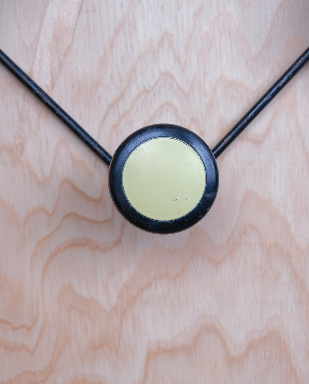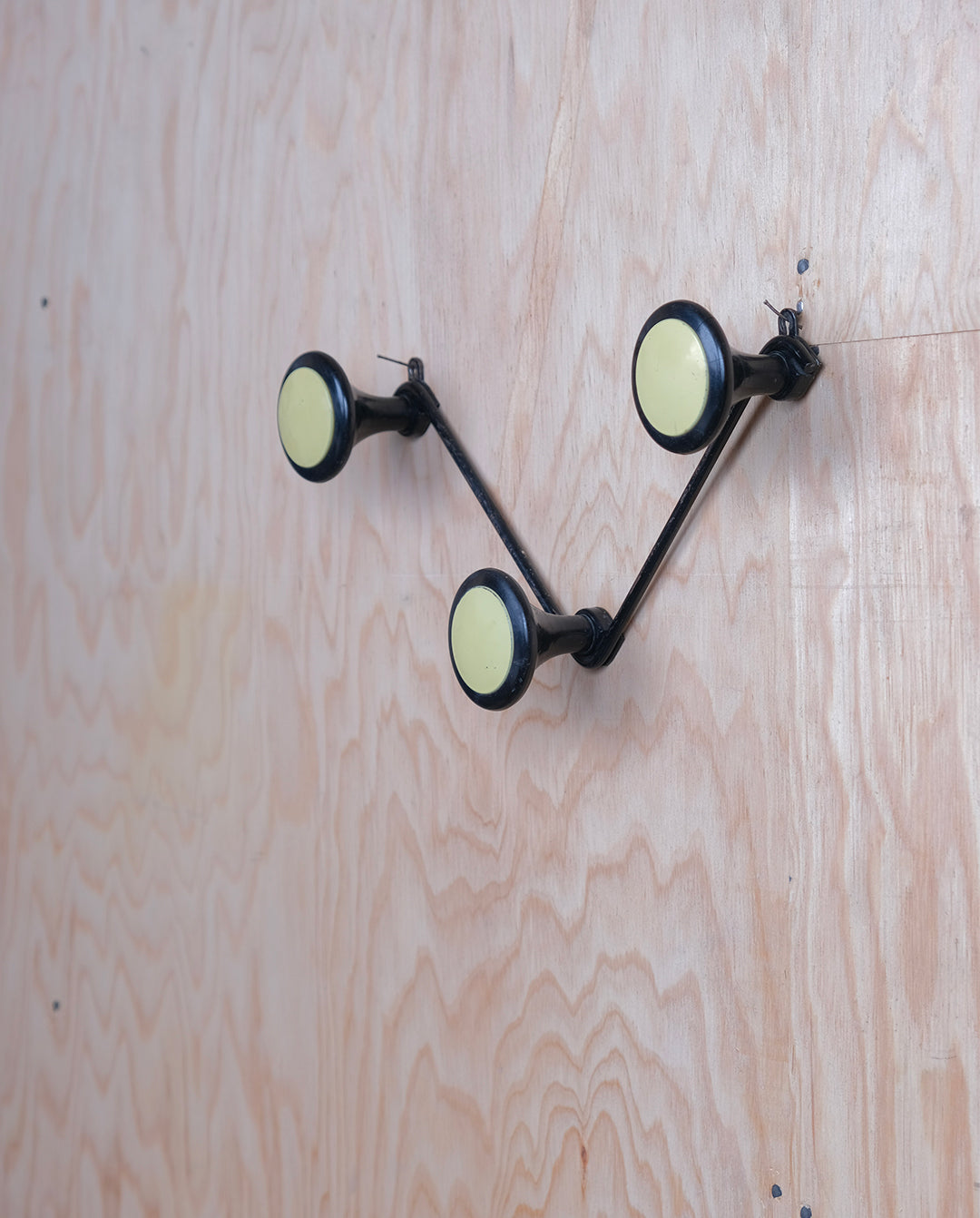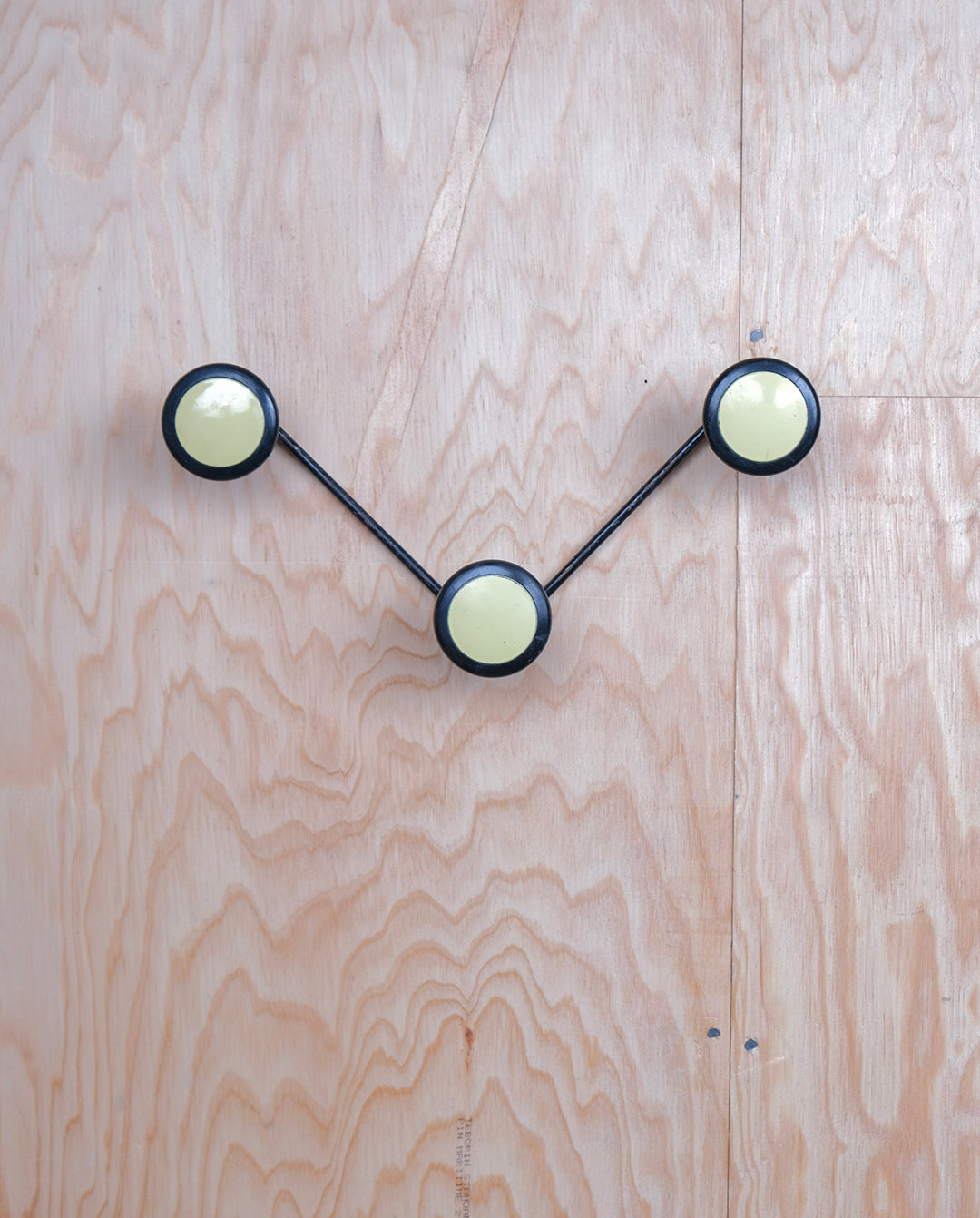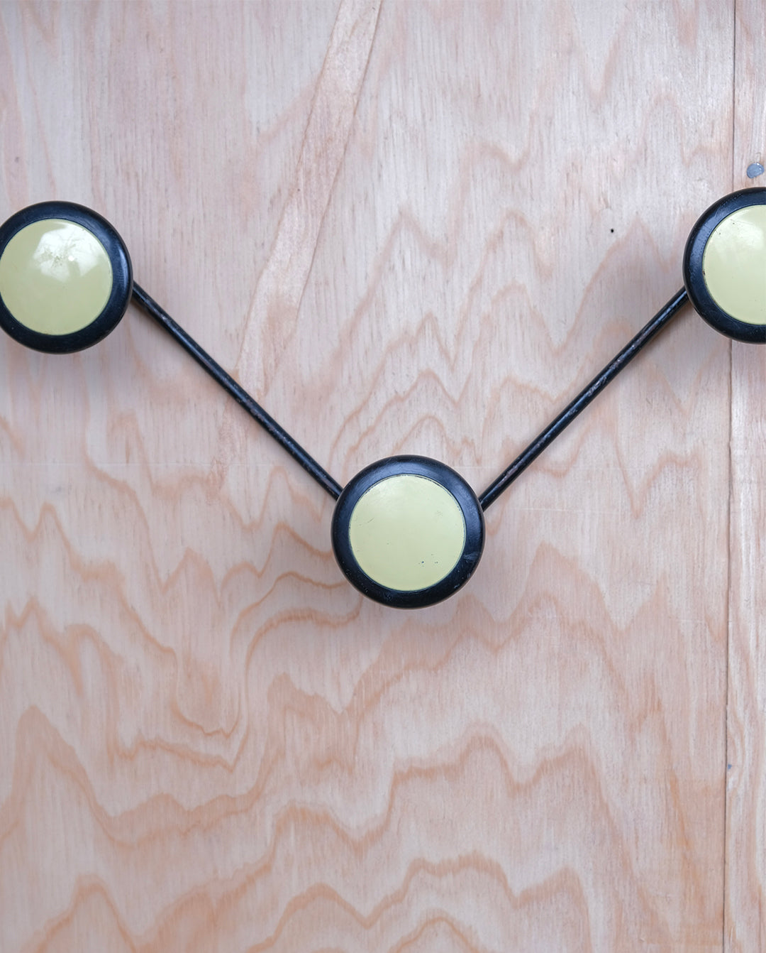 Porte-manteau mural vintage à 3 patères en forme de zigzag en métal noir et jaune pale.