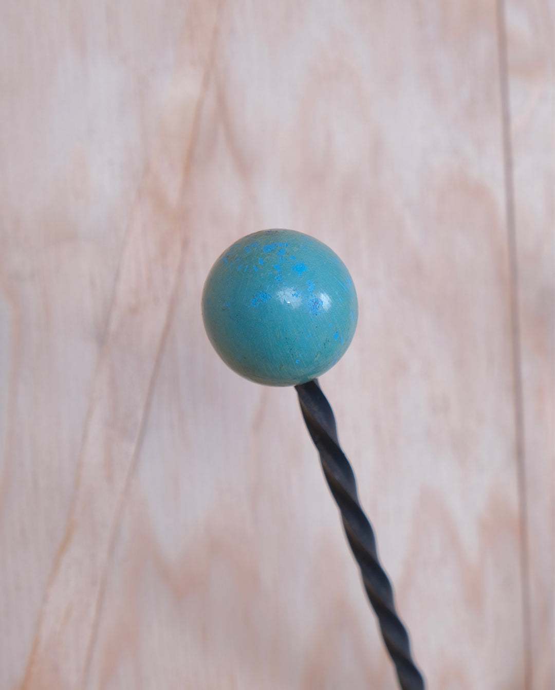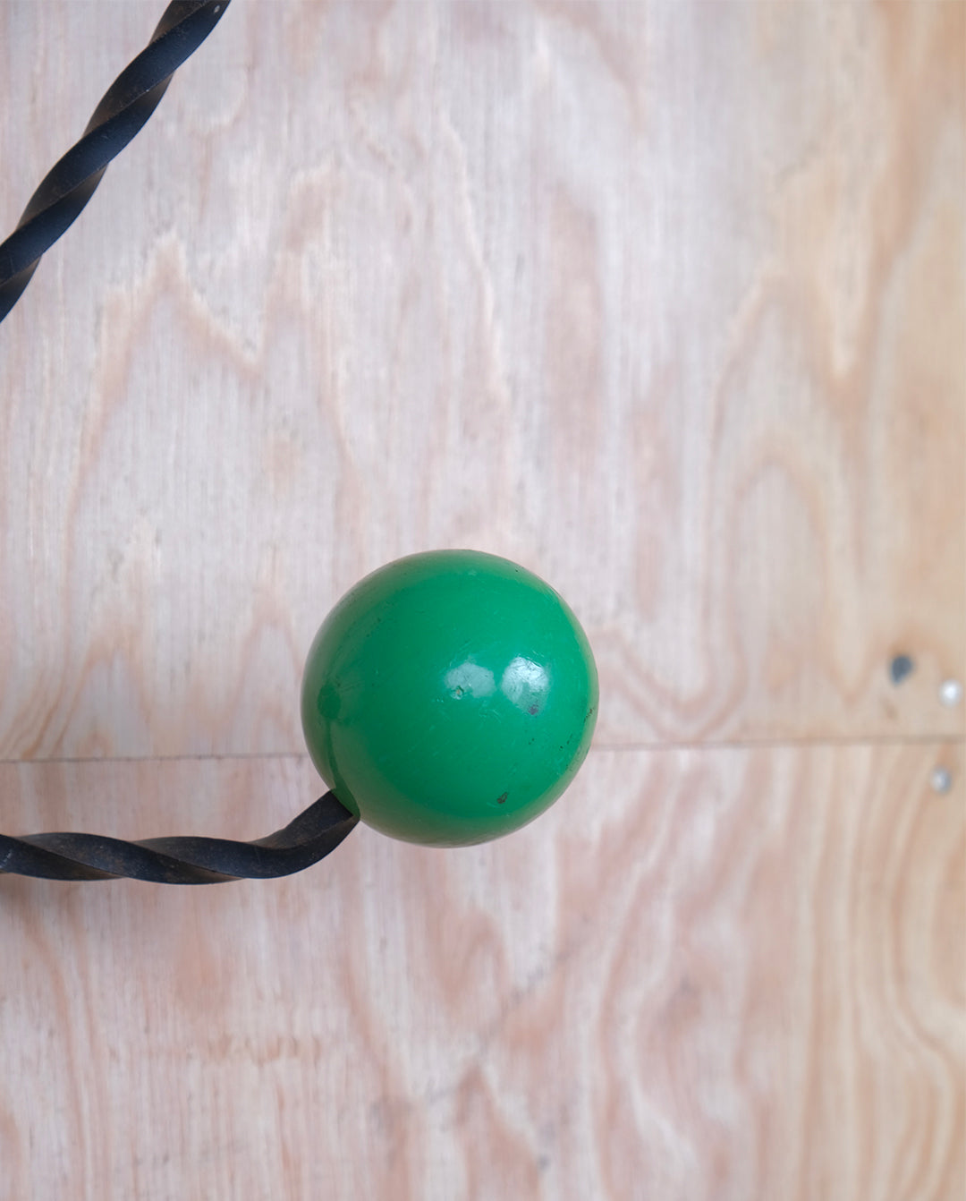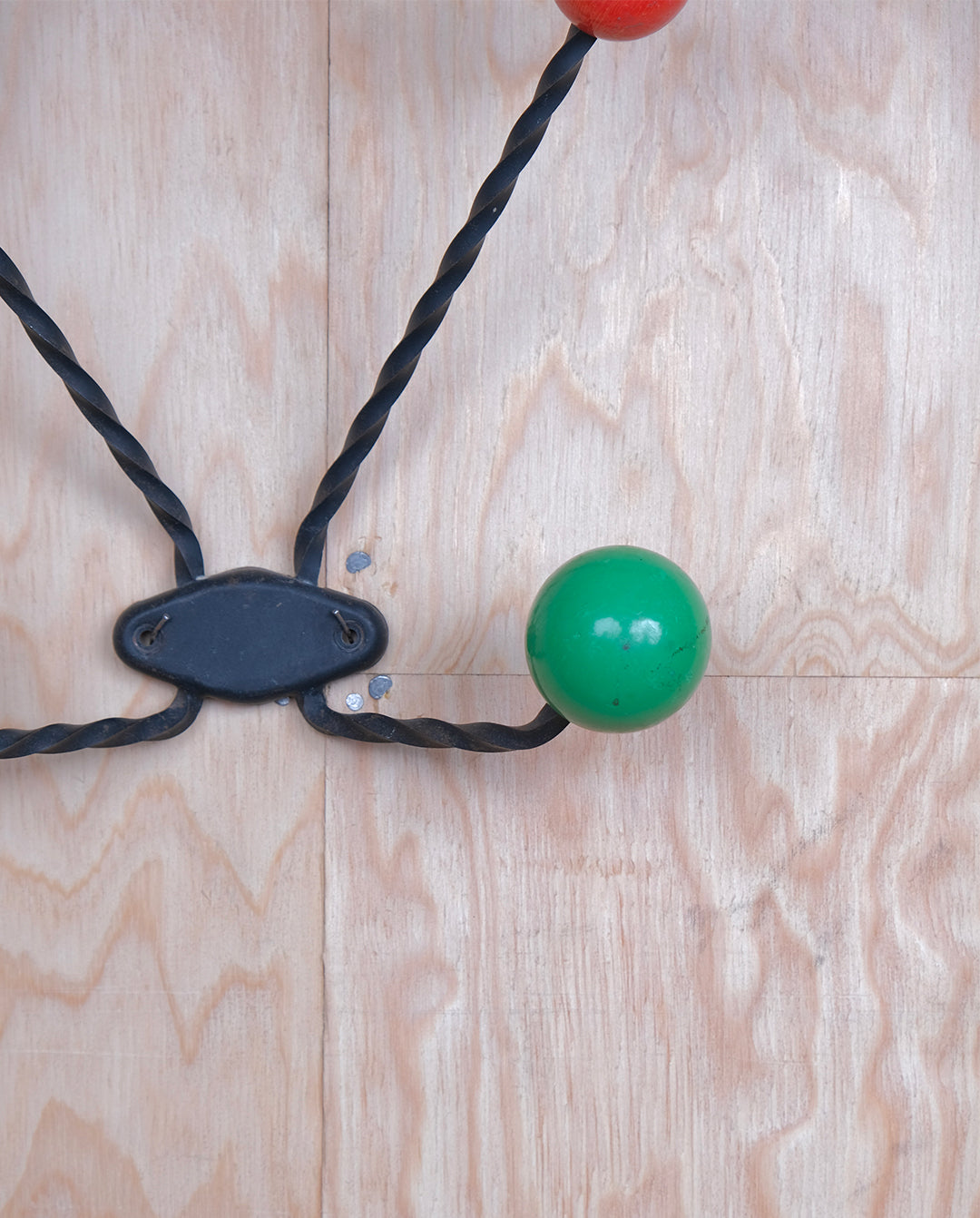 Porte-manteau mural vintage en métal à 4 patères en bois peint.