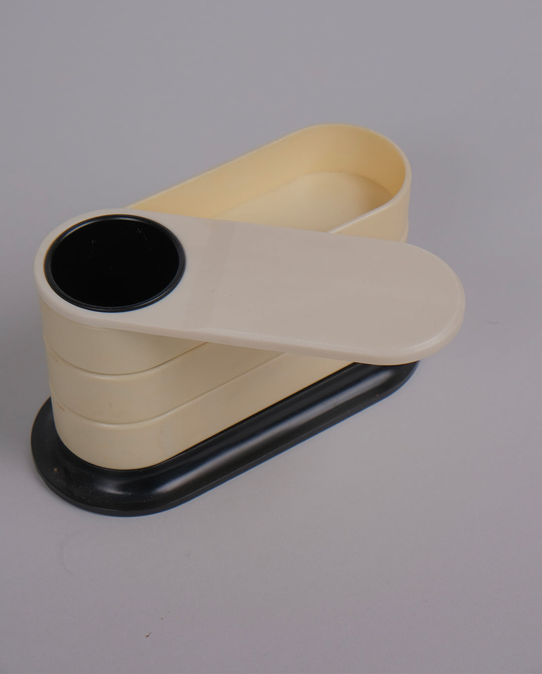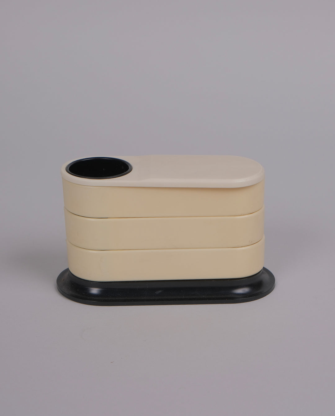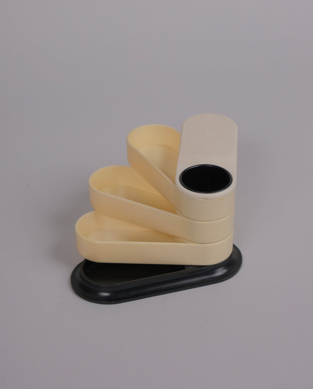 Pot à crayon vintage, comprenant plusieurs compartiments amovibles pour ranger des petits éléments de bureau, années 70