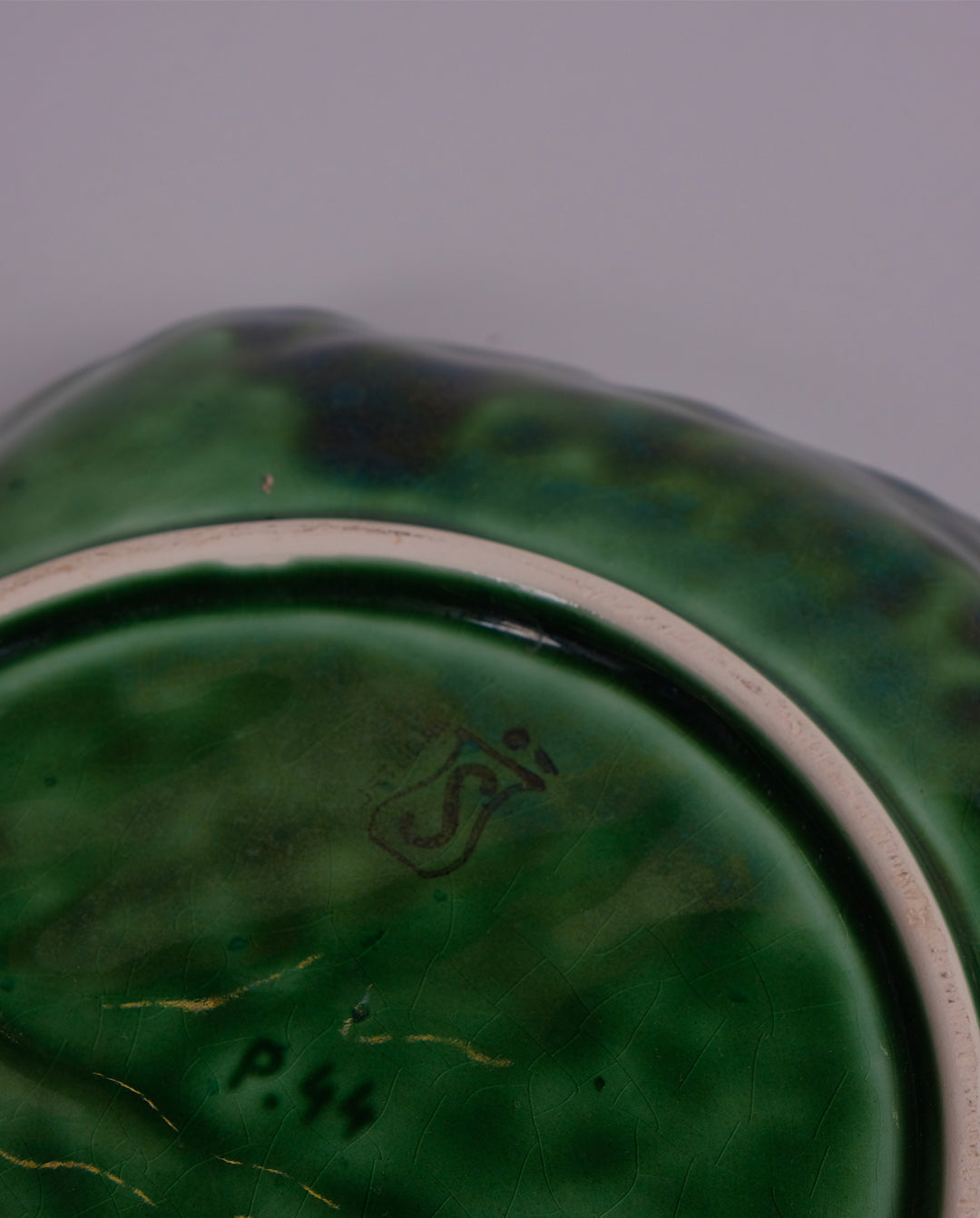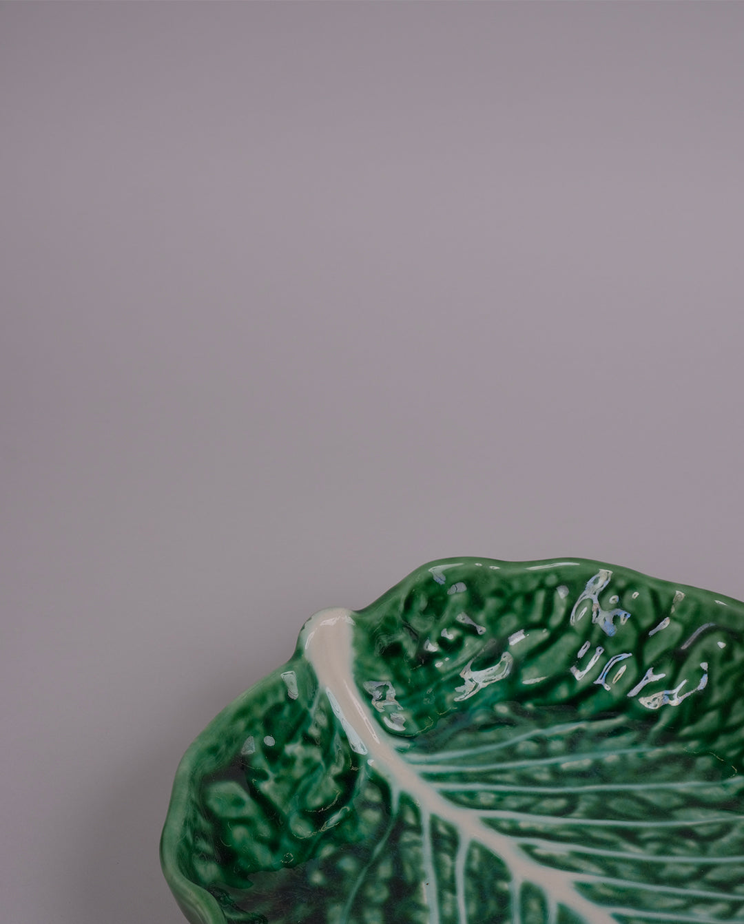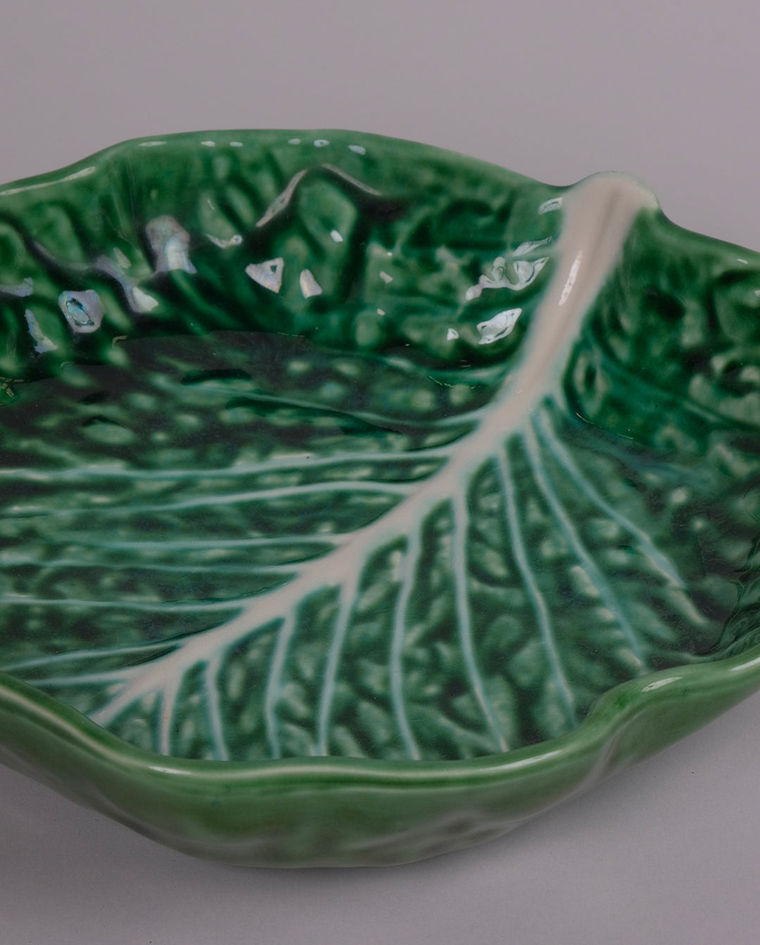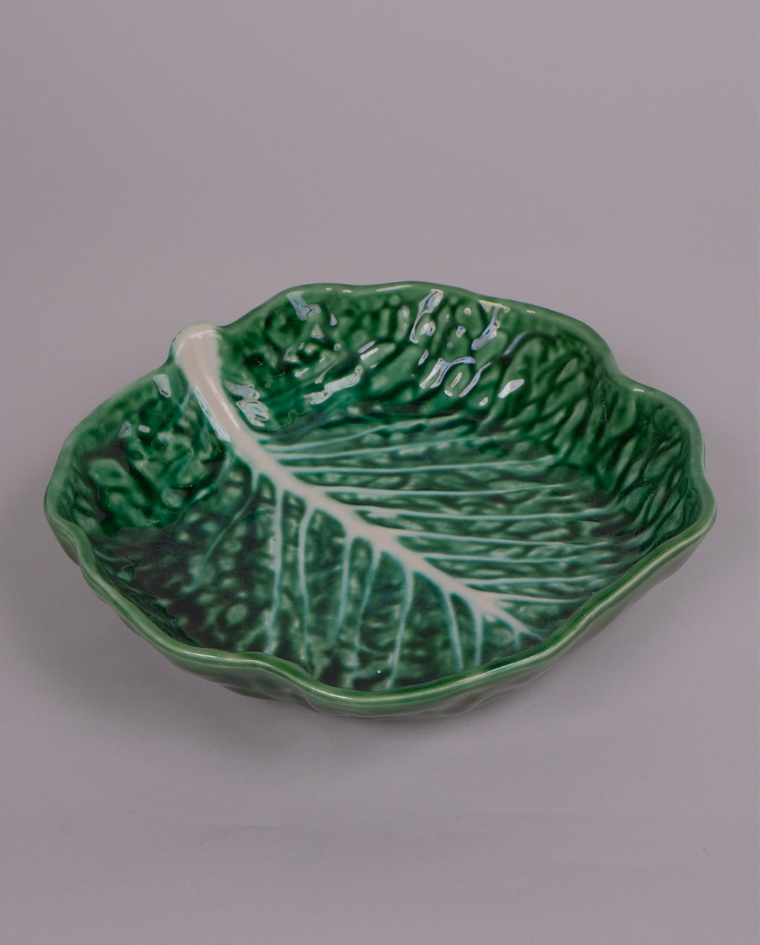 Saladier en barbotine en forme de feuille de chou, made in Portugal