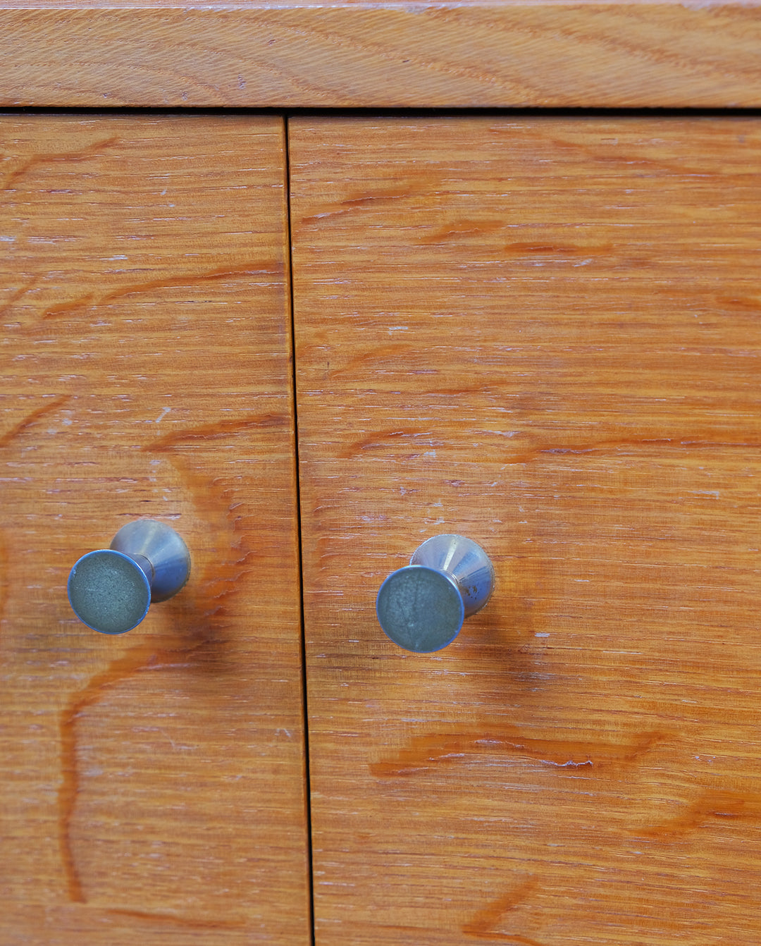 Deux porte en bois qui s'ouvrent sur un espace de rangement avec une étagère.