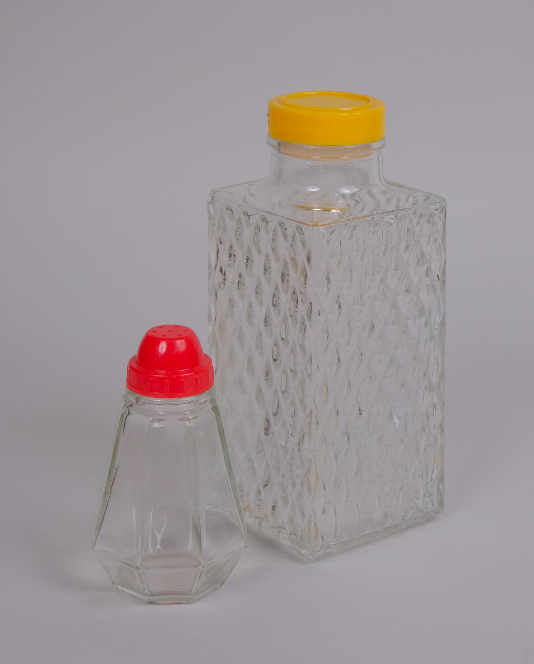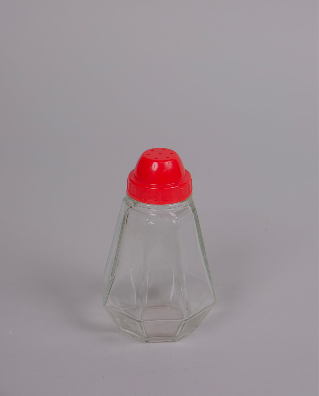 Sucrier vintage en verre et bouchon en plastique rouge, années 80