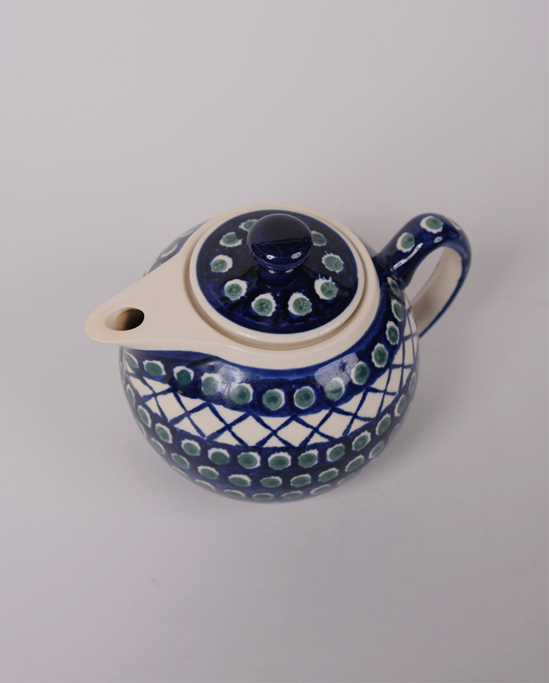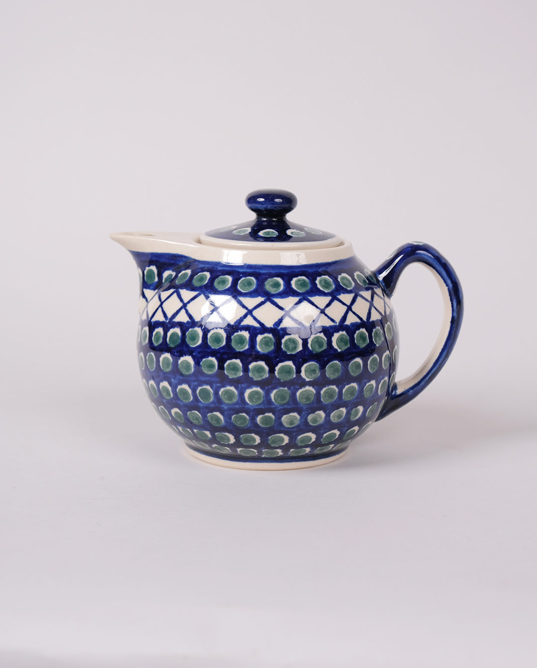 Théière et son capuchon en faïence à motifs peints à la main, made in Poland.