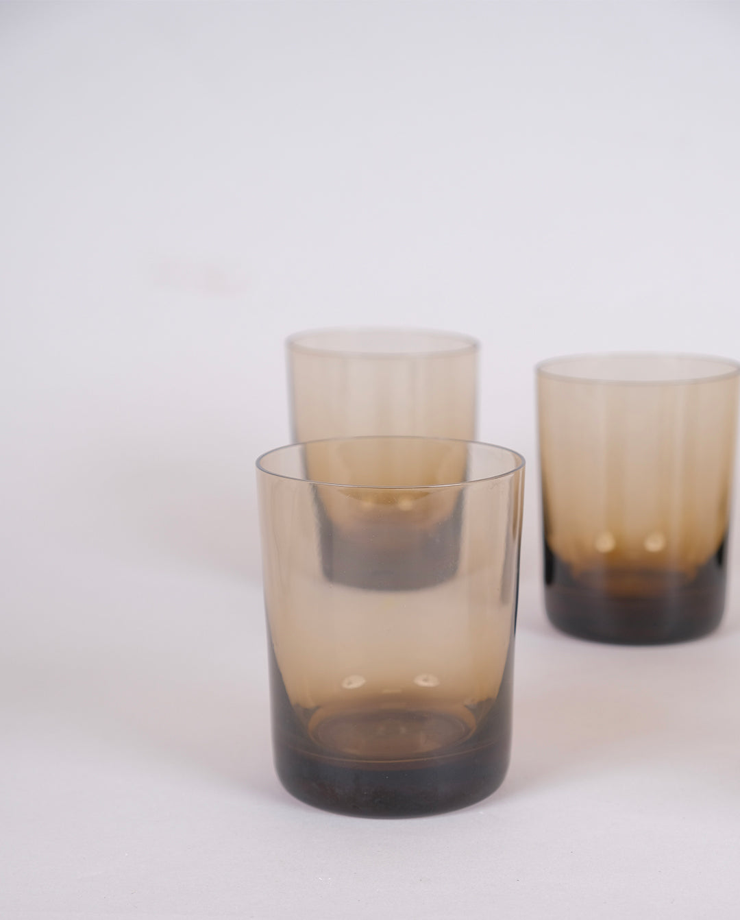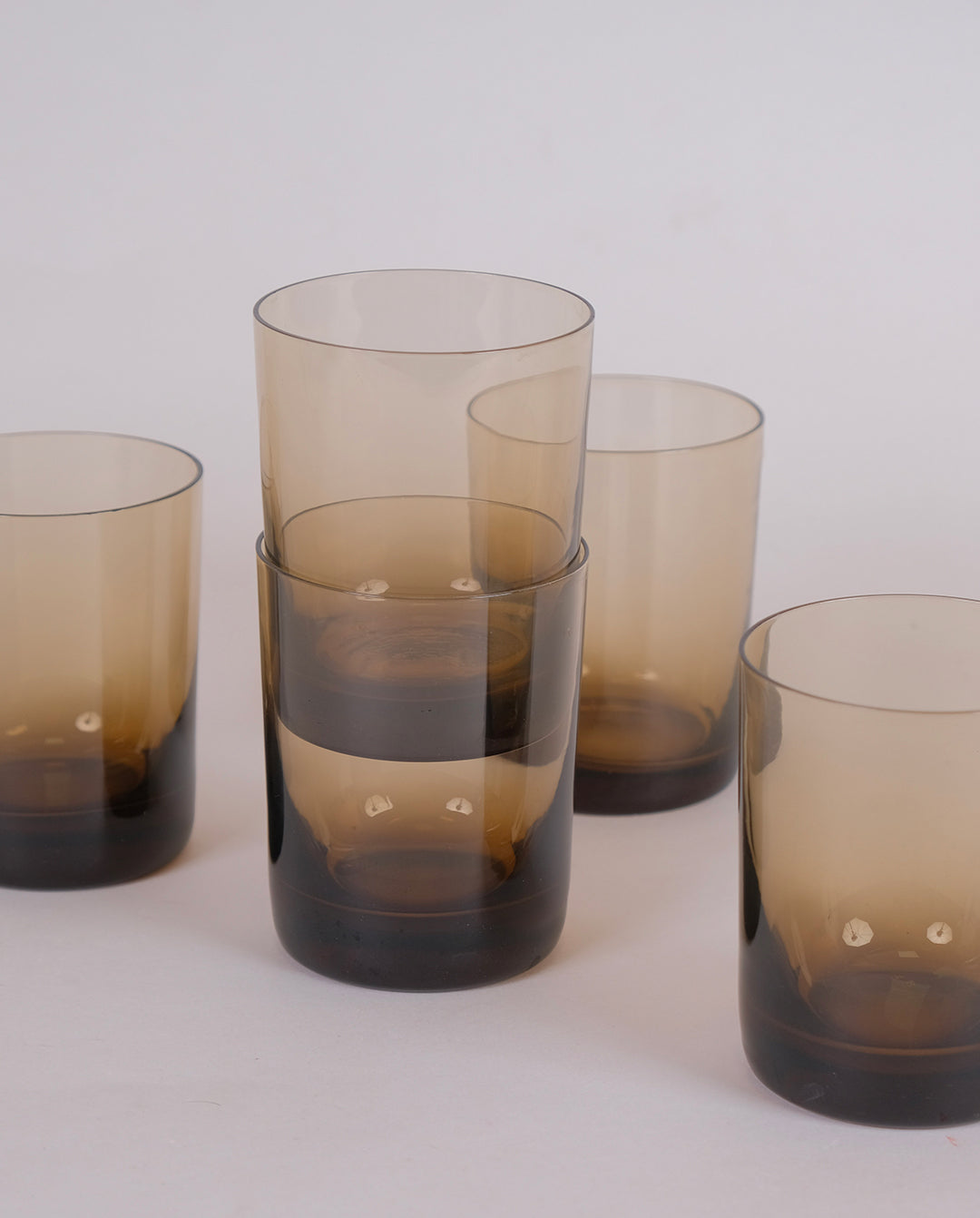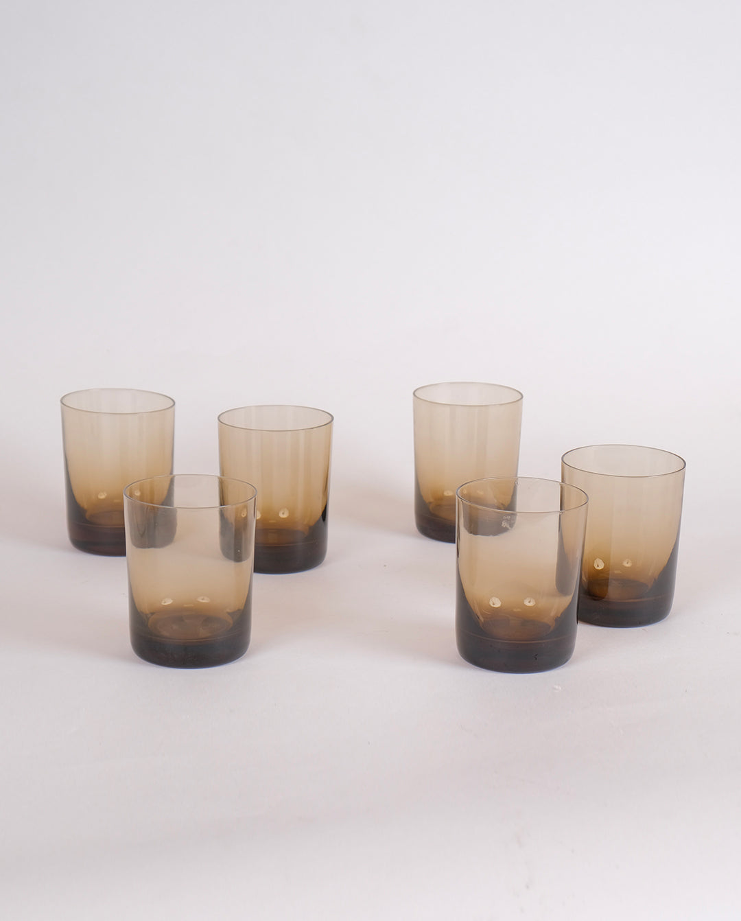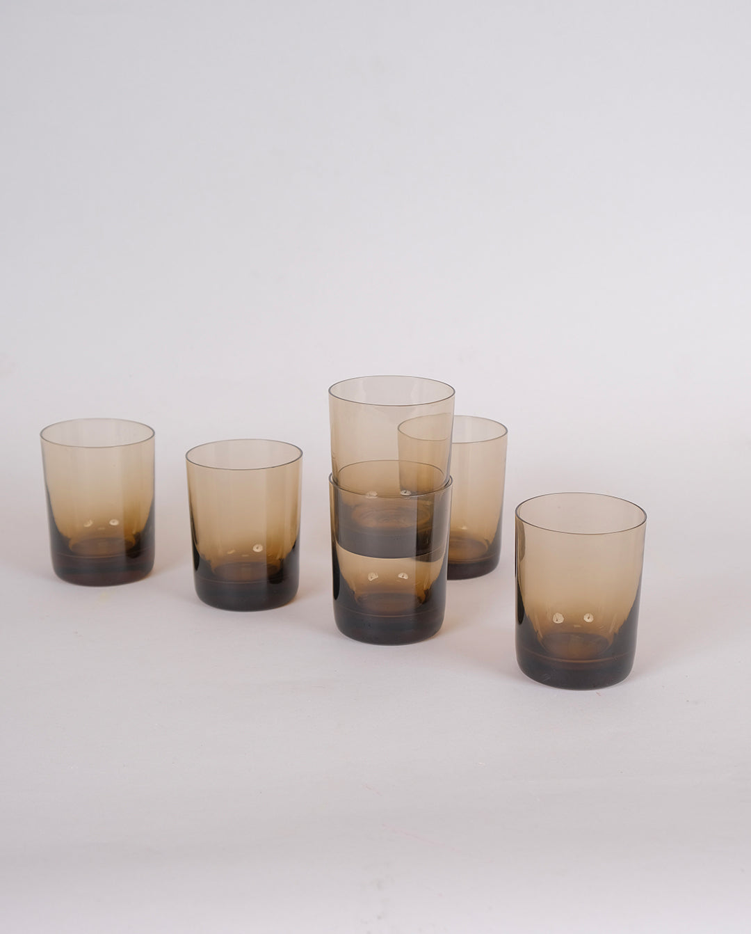 Ensemble de 6 verres à eau en verre fumé. Verres très fin à fond épais et empilables.