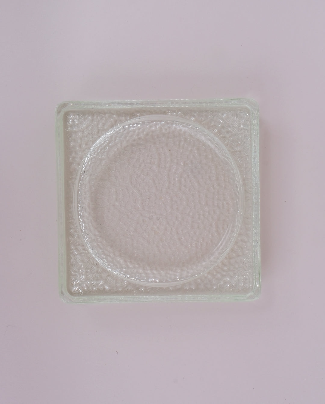Grand vide-poche en verre pressé en forme de carreau de verre.